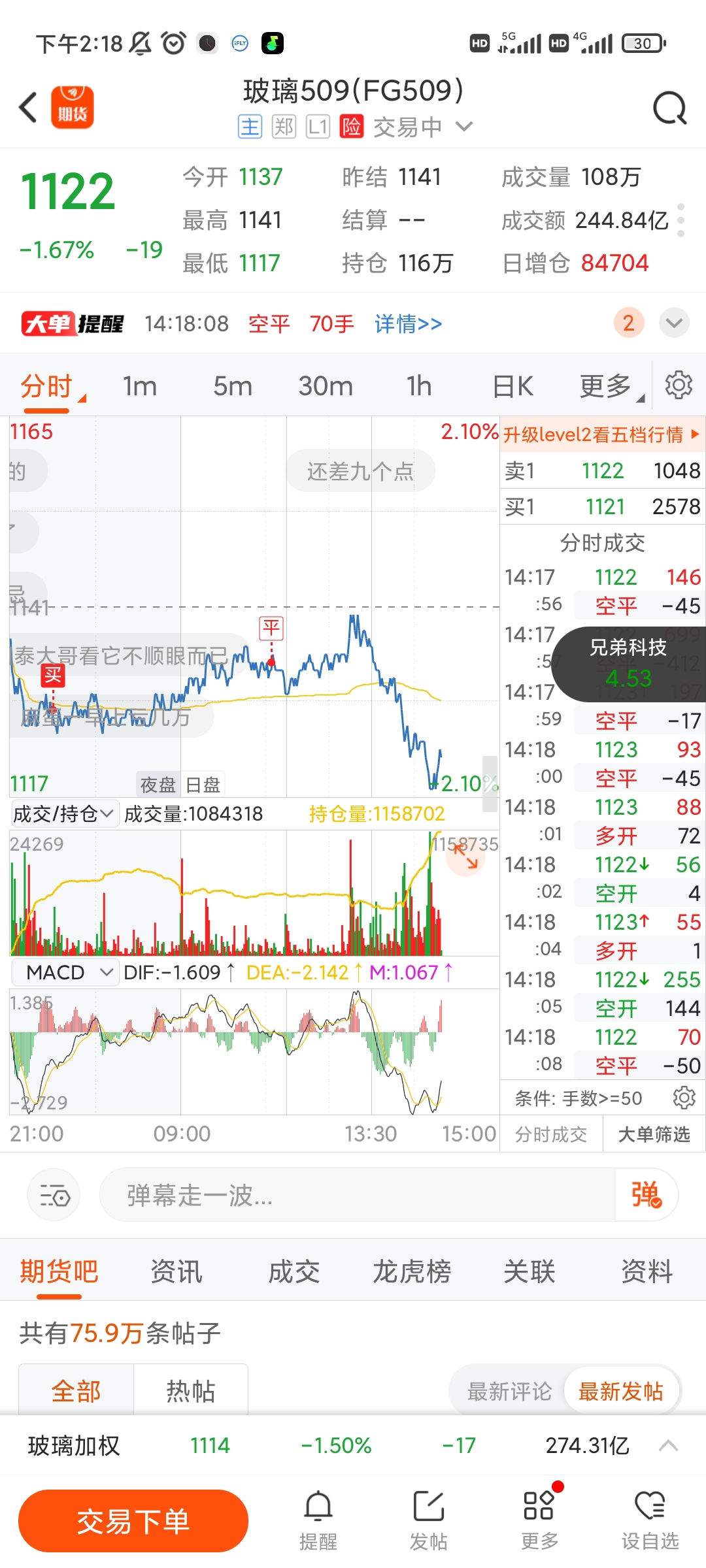 $玻璃509(CZCE|FG509)$ 才五个价位,搞个饭钱。没搞头还好没贪,不然今天又要亏。