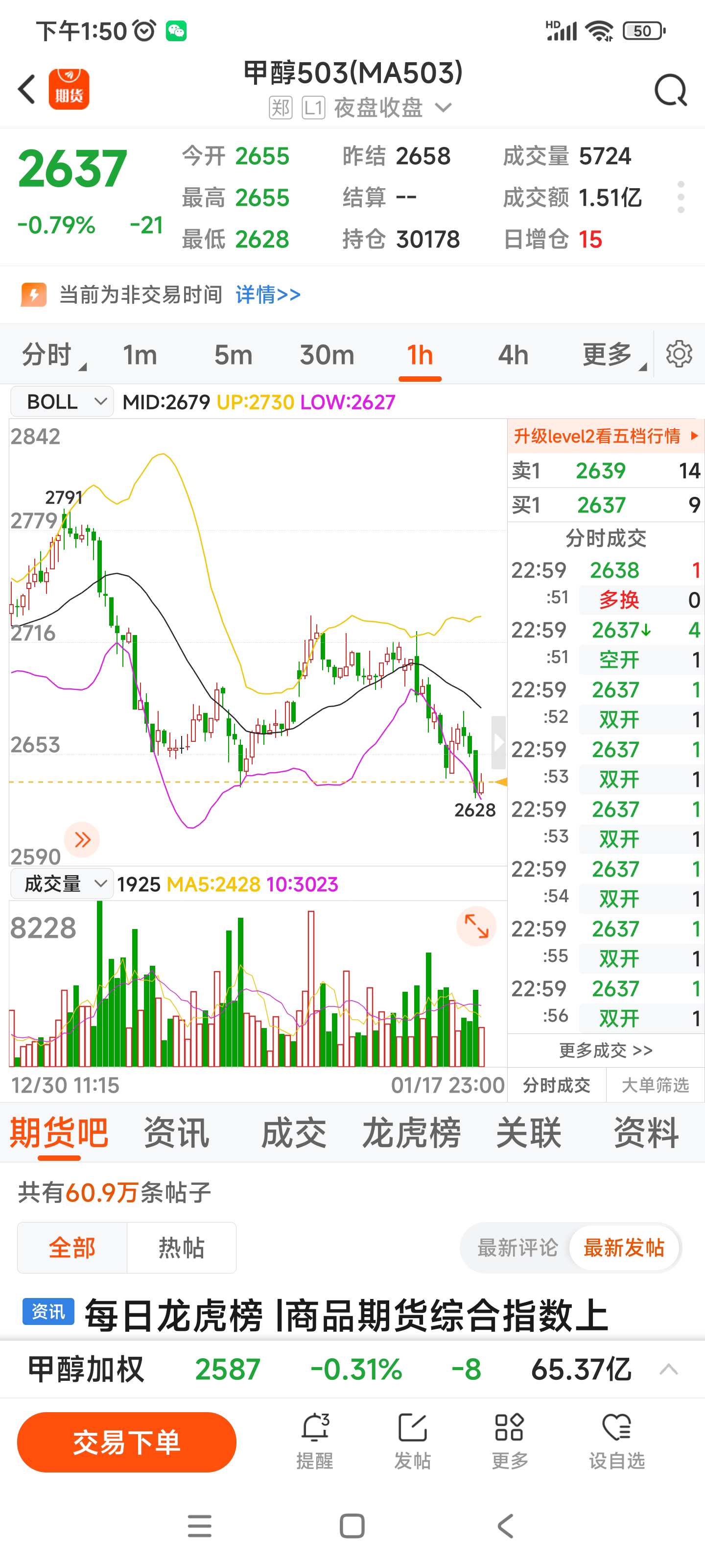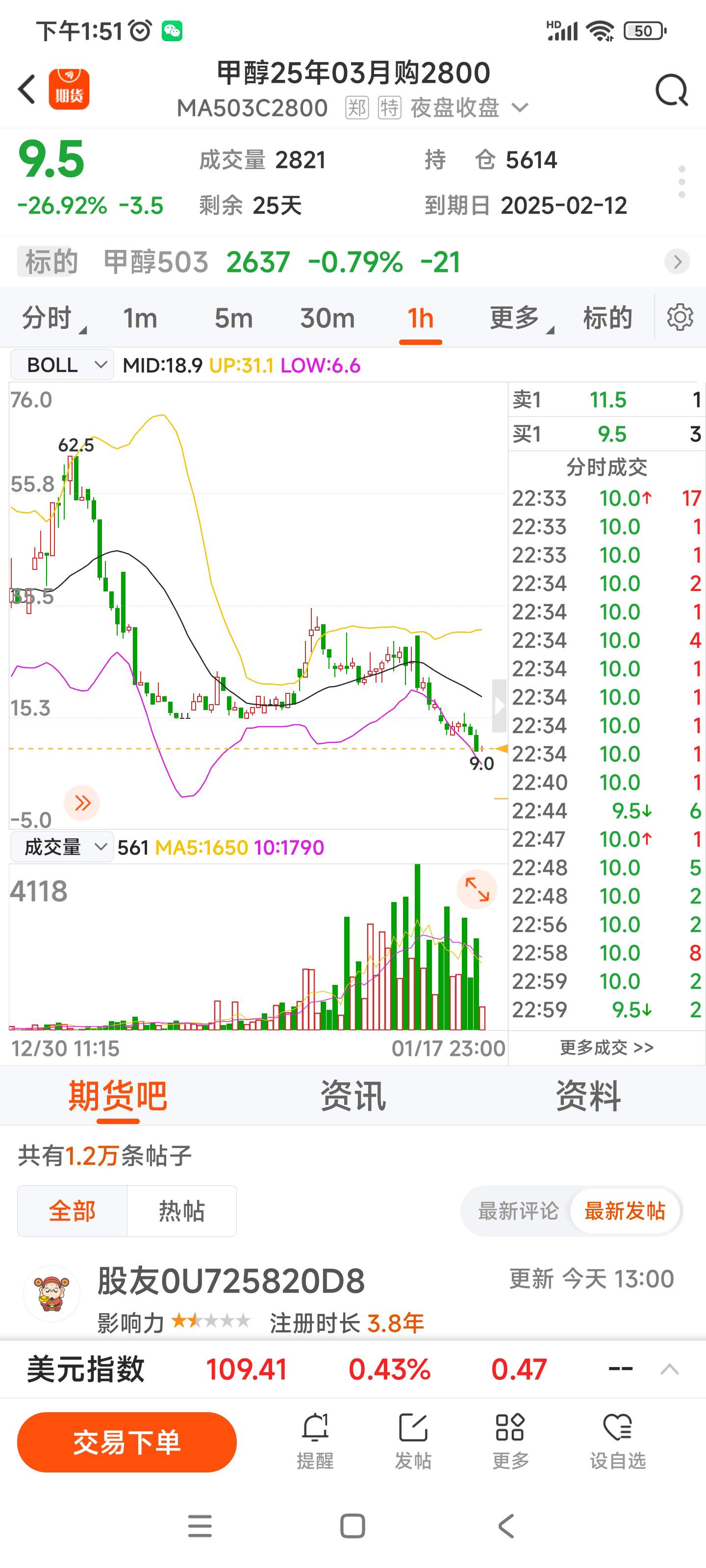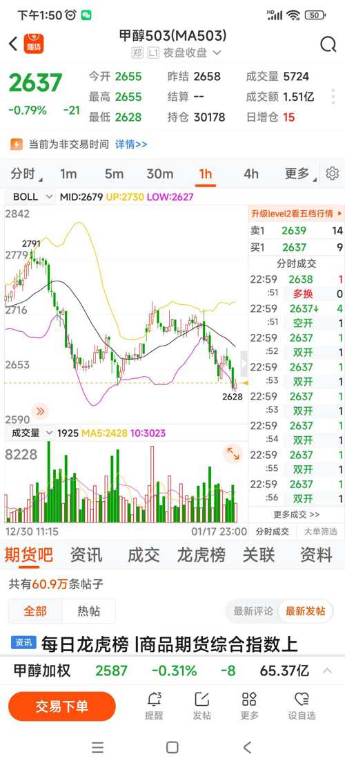 503甲醇,感觉跌不下去了,假如跌不破2600,近期很有可能在冲击2800,期友们你们觉得可能性大吗