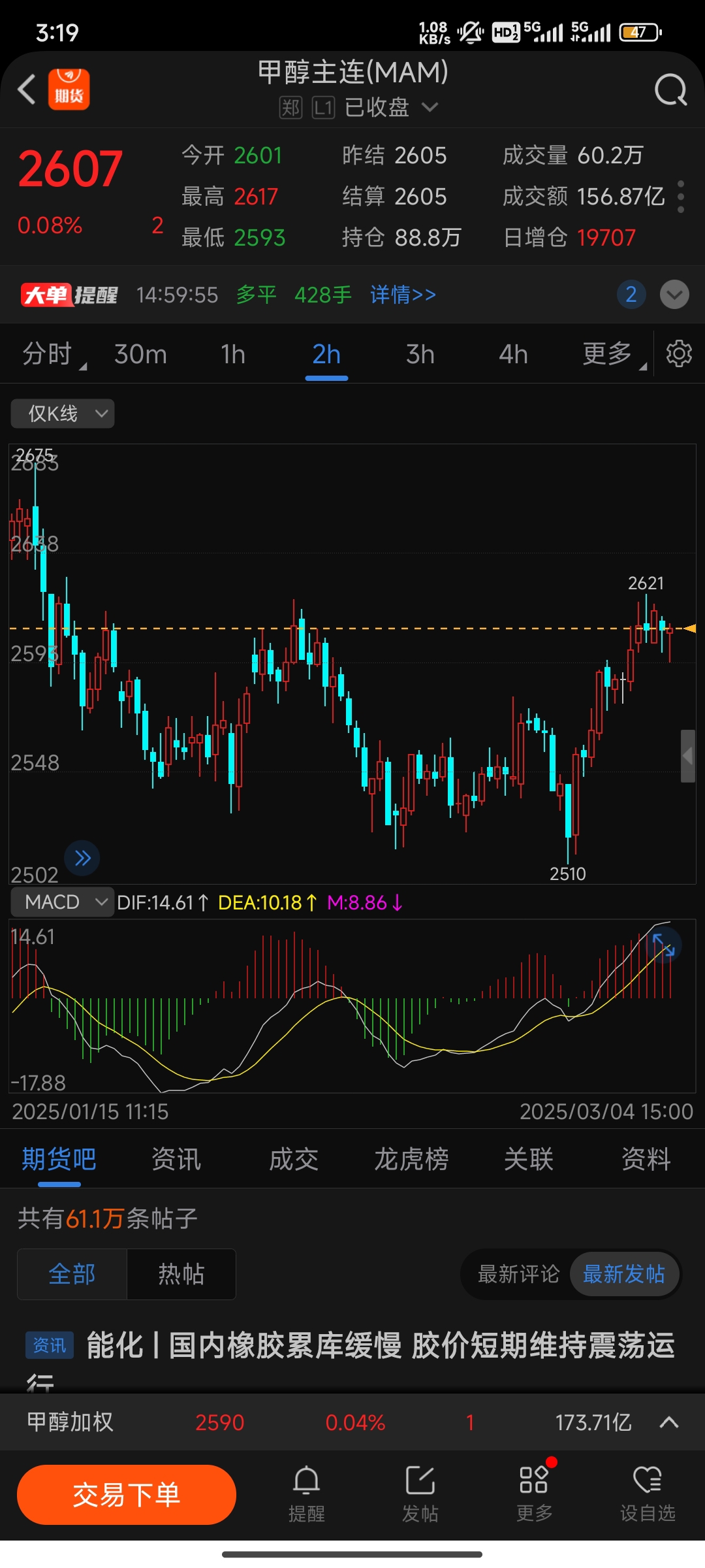 $甲醇主连(CZCE|MAM)$ 2600附近多