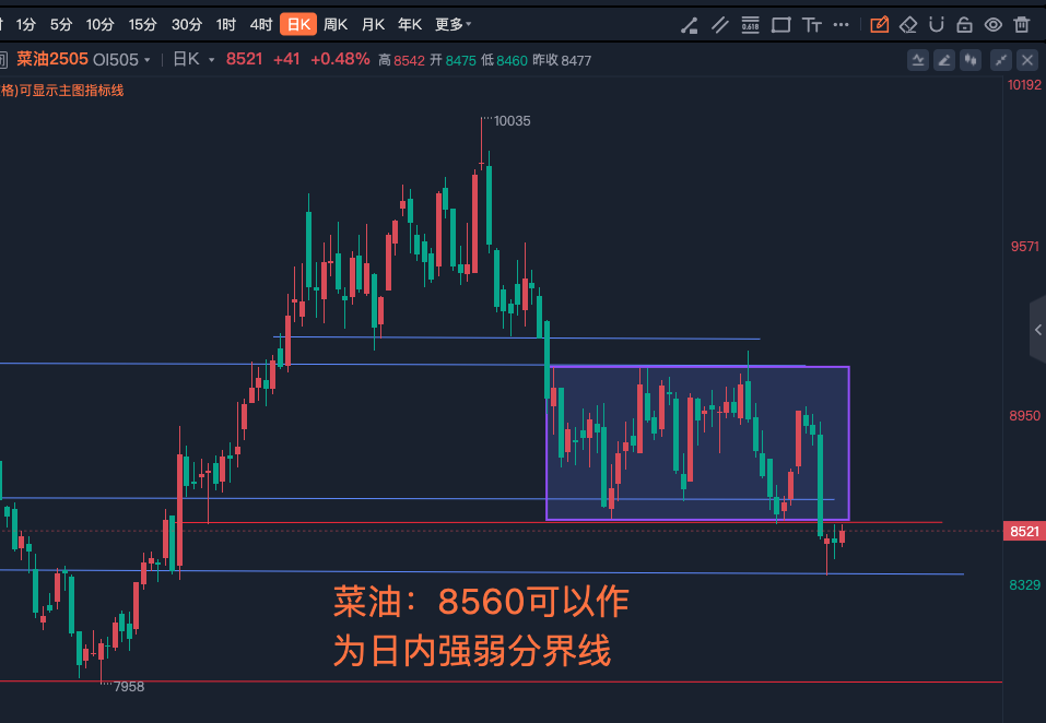 1-21菜油:8560可以作为日内强弱分界线