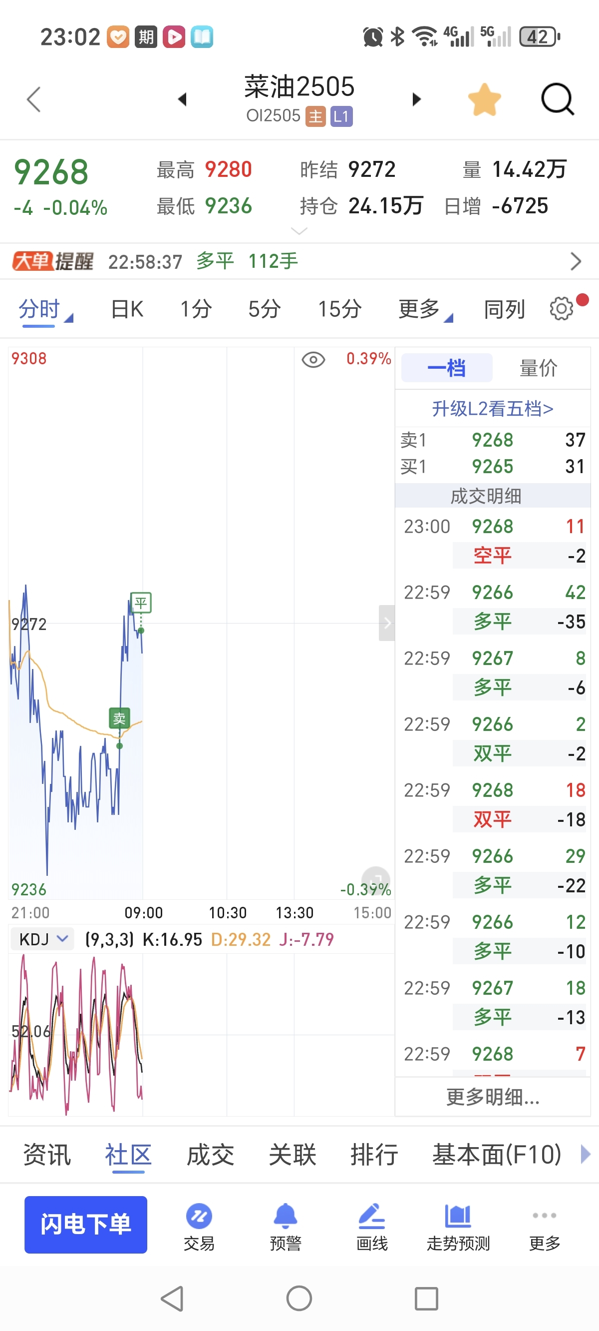 $菜油505(CZCE|OI505)$ 忘记撤单,尾盘也要送200块钱给多头主力