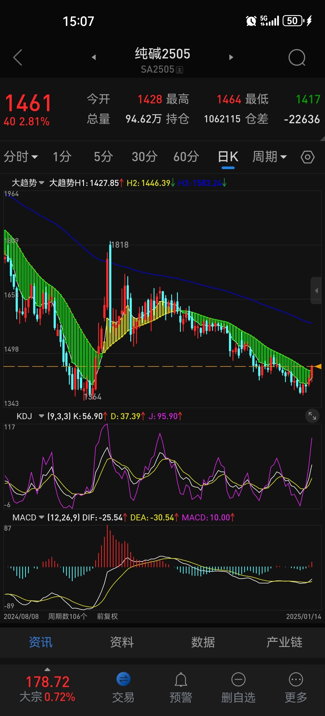 $纯碱505(CZCE|SA505)$ 今天晚上确认进入做多阶段。