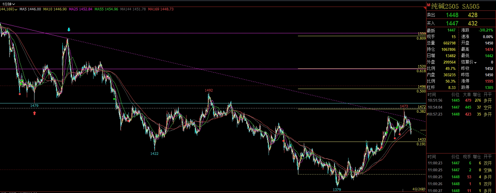 早圈定了图表,1430~1480这区间徘徊,短线无论多空,你水平通道无风险套利!