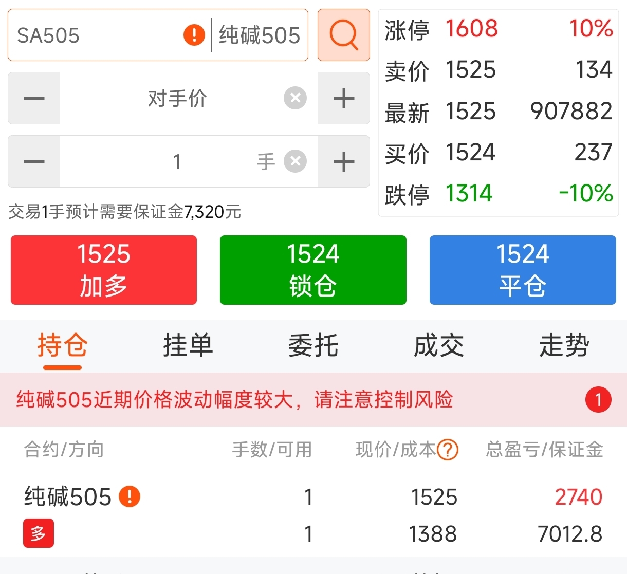 $纯碱505(CZCE|SA505)$ 只有一手才敢拿那么久,多了拿不住了!