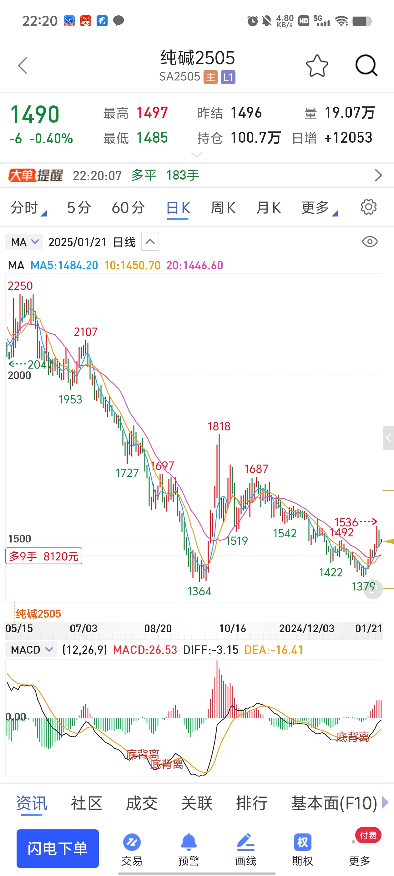 $纯碱505(CZCE|SA505)$ 本来盈利1个W多,,贪心了,,,哎