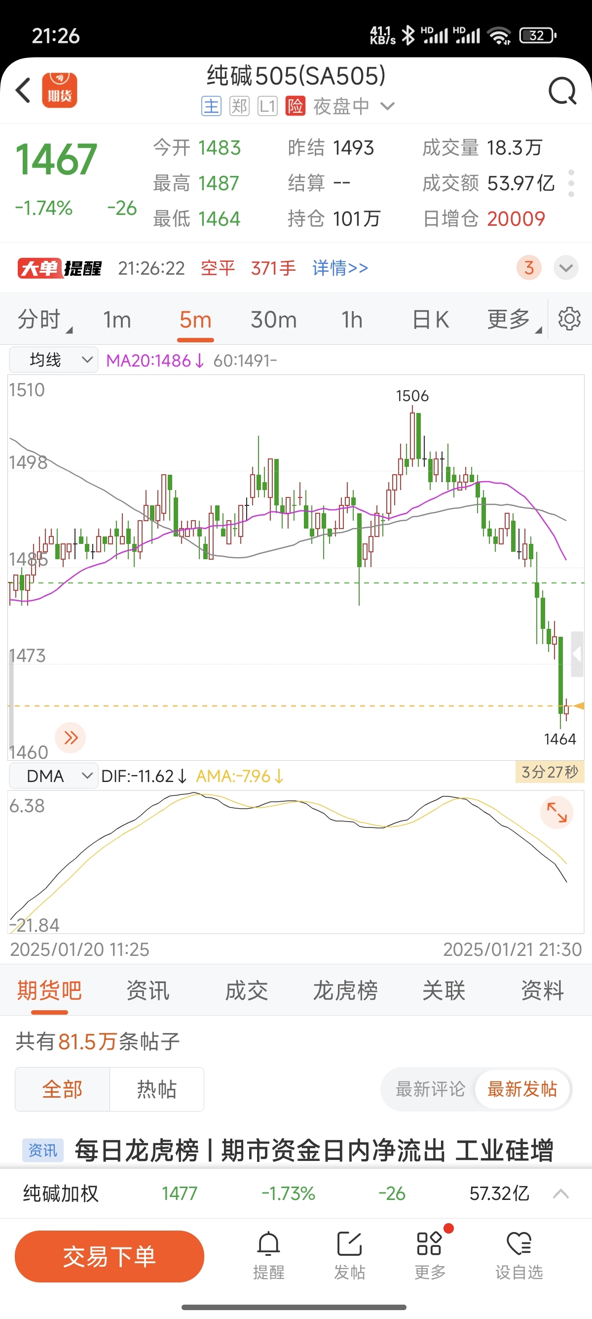 $纯碱505(CZCE|SA505)$ 师父们,这波能到1400吗???