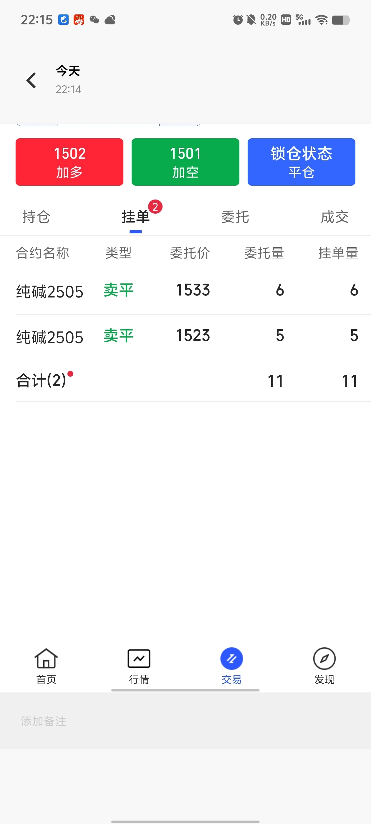 $纯碱505(CZCE|SA505)$ 说实话不是过年我都敢持仓,过年变化太快,不好掌握,年后谁都说不准,做多20多手手从1400一直到1536却没割,总想着还会涨,结果回撤到1500左右割了,,就剩11手挂单,,祝你们留下发财,, 安安心心过年了