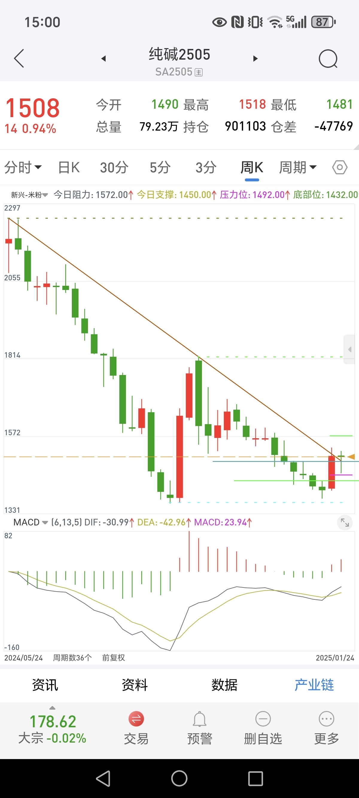 $纯碱505(CZCE|SA505)$ 好掂水,周线稳了!