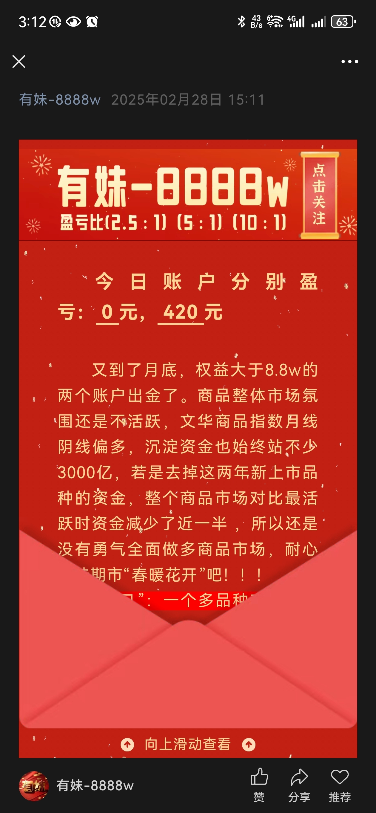 2月28日交易报告,合计盈亏420元(2.5:1,5:1盈亏比)
