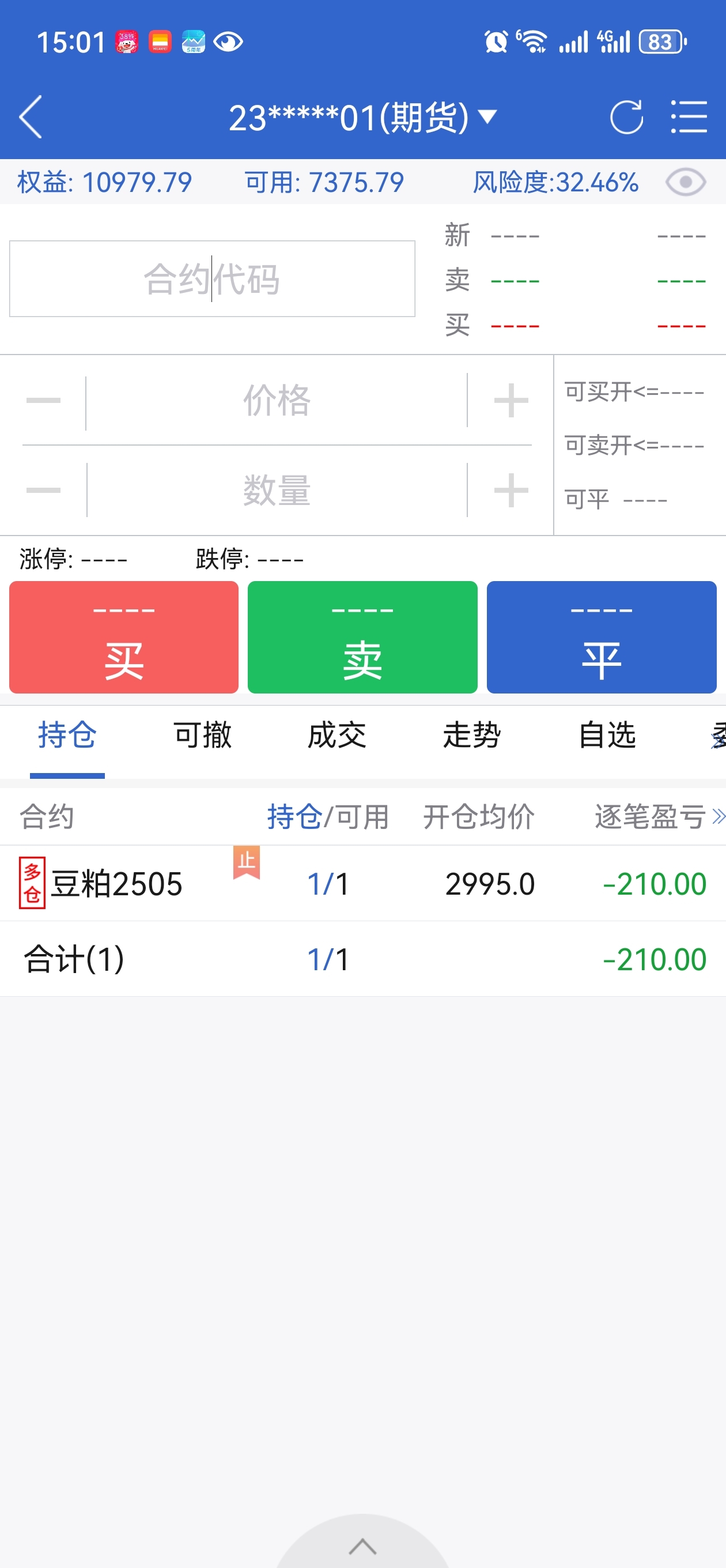 豆粕,这是模式以外的单子,不熟悉品种,不熟悉走势,回拉两次赚钱都没走。后续应该问题不大,有机会等下次回本就跑路。以后模式以外的就不做了。