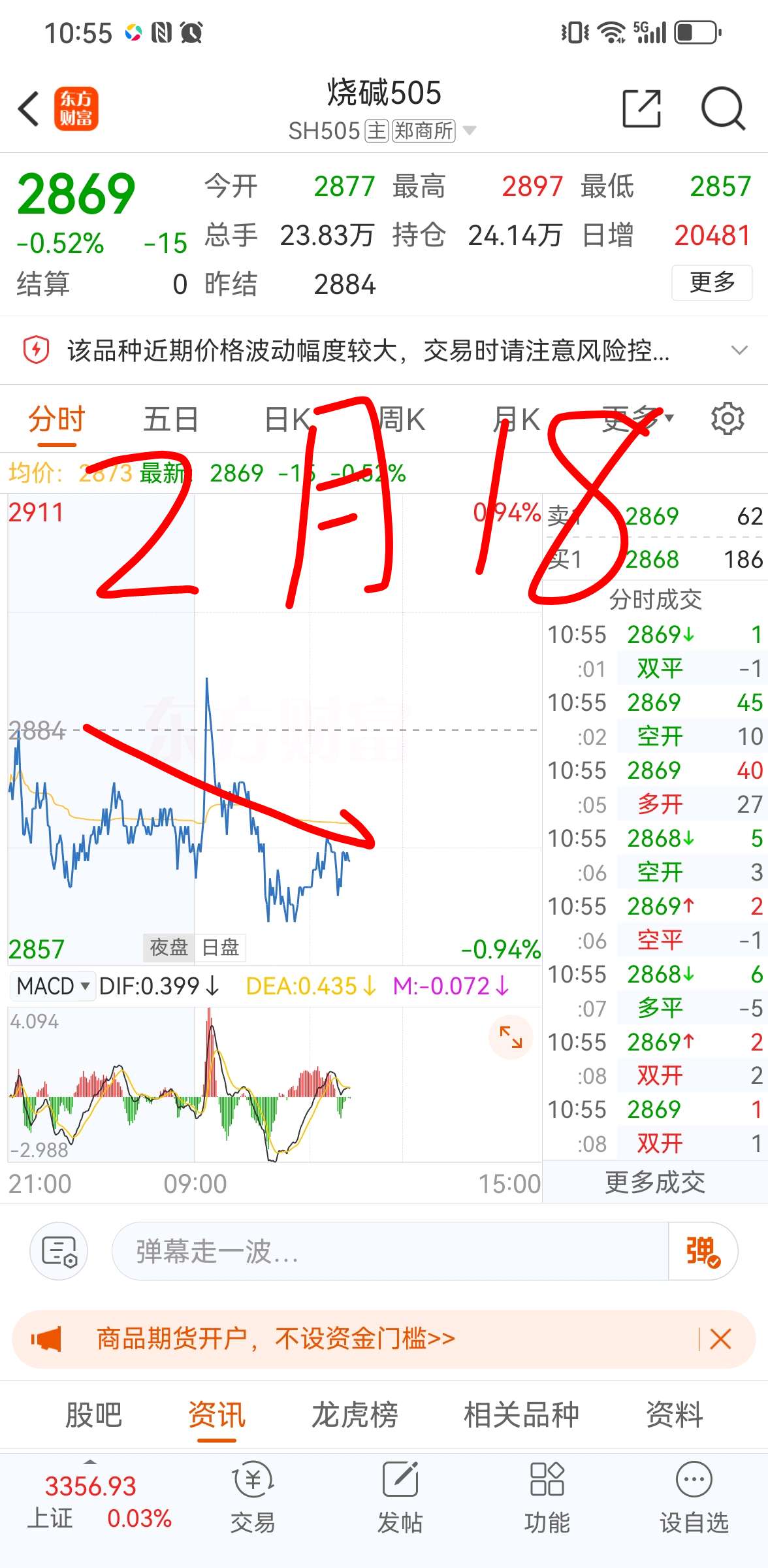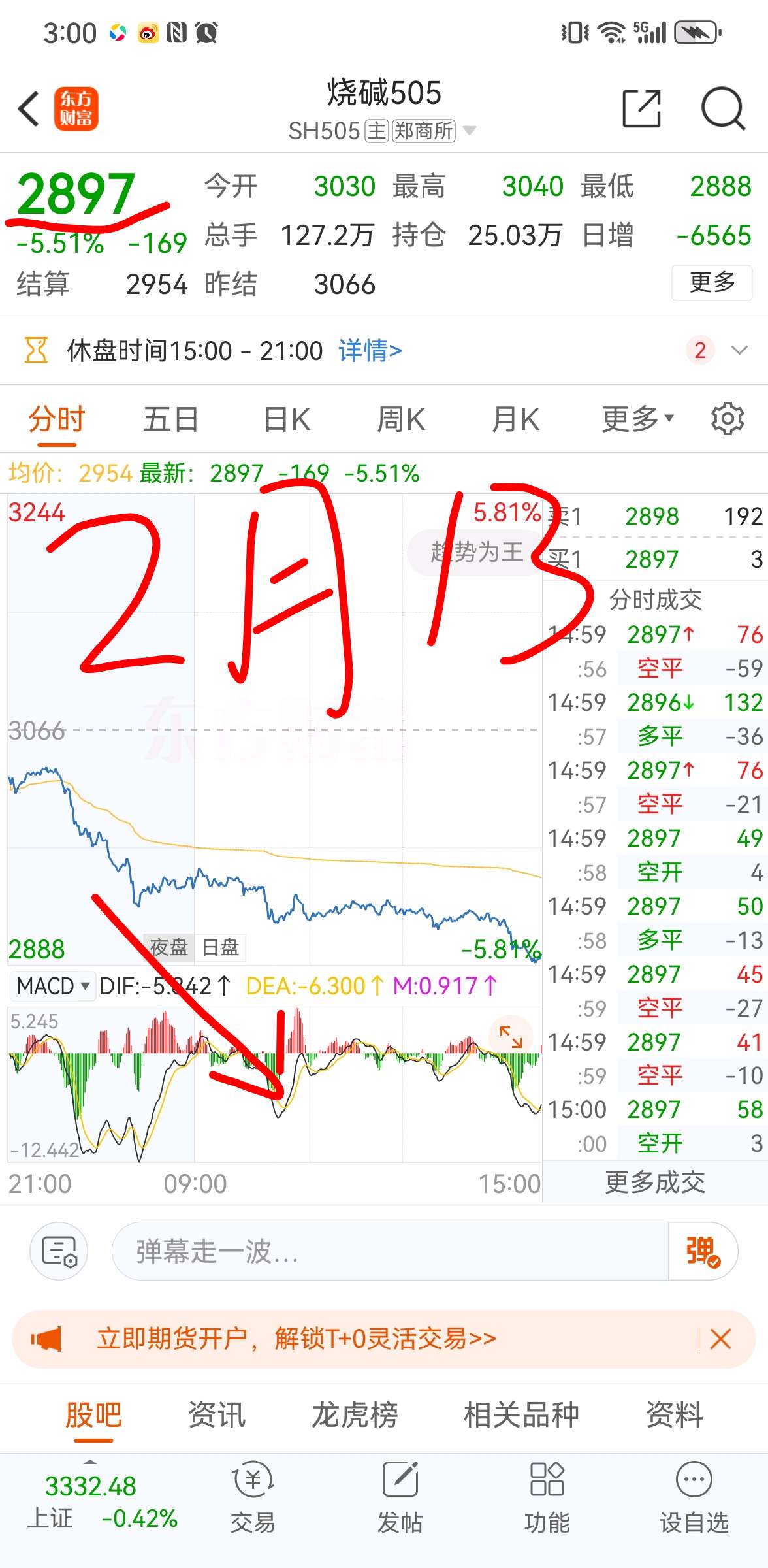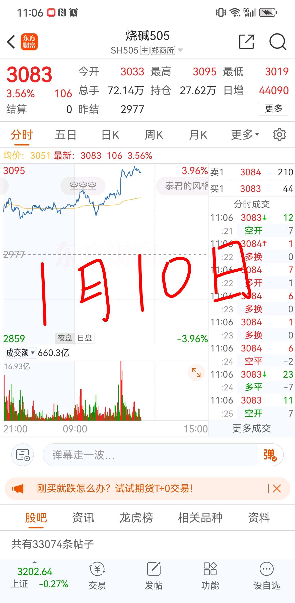 烧碱主现在3088会干到3500。我会在春暖花开时,在那山顶上,开大空吃他500
