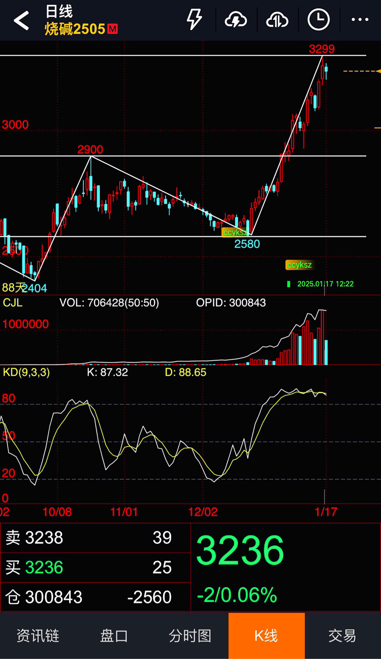日线“上下上”结构本身就是下跌形态,再怎么向上新生、延伸、扩张、扩展,向上一笔2580~3299=上涨719点,1个点30元,上涨719还不够吃吗?不要忘了,烧碱只是以原盐为原料的低端化工产品,你要知道,5nm、3nm芯片的净利润率也只有43.1%。烧碱比5nm、3nm芯片还牛吗?