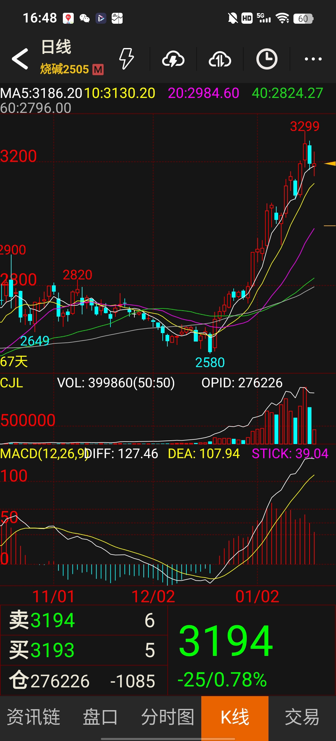 我宣布,烧碱5月合约这波由2580开启的1浪上涨已结束,由3299开启2浪回调波