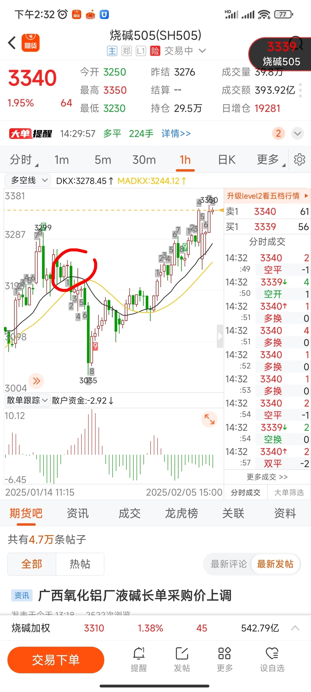 $烧碱505(CZCE|SH505)$ 什么时候可以开空?看半小时或者小时线,这种小幅度的下跌 连续有个四五个,那时候可以轻仓开一手,同时观察一下散户的资金流向,如果有大幅度的下跌,那就果断开多,这说明主力在洗盘,或者连续两个日线小幅度下跌,但是如果有大幅度下跌,那就要小心了。