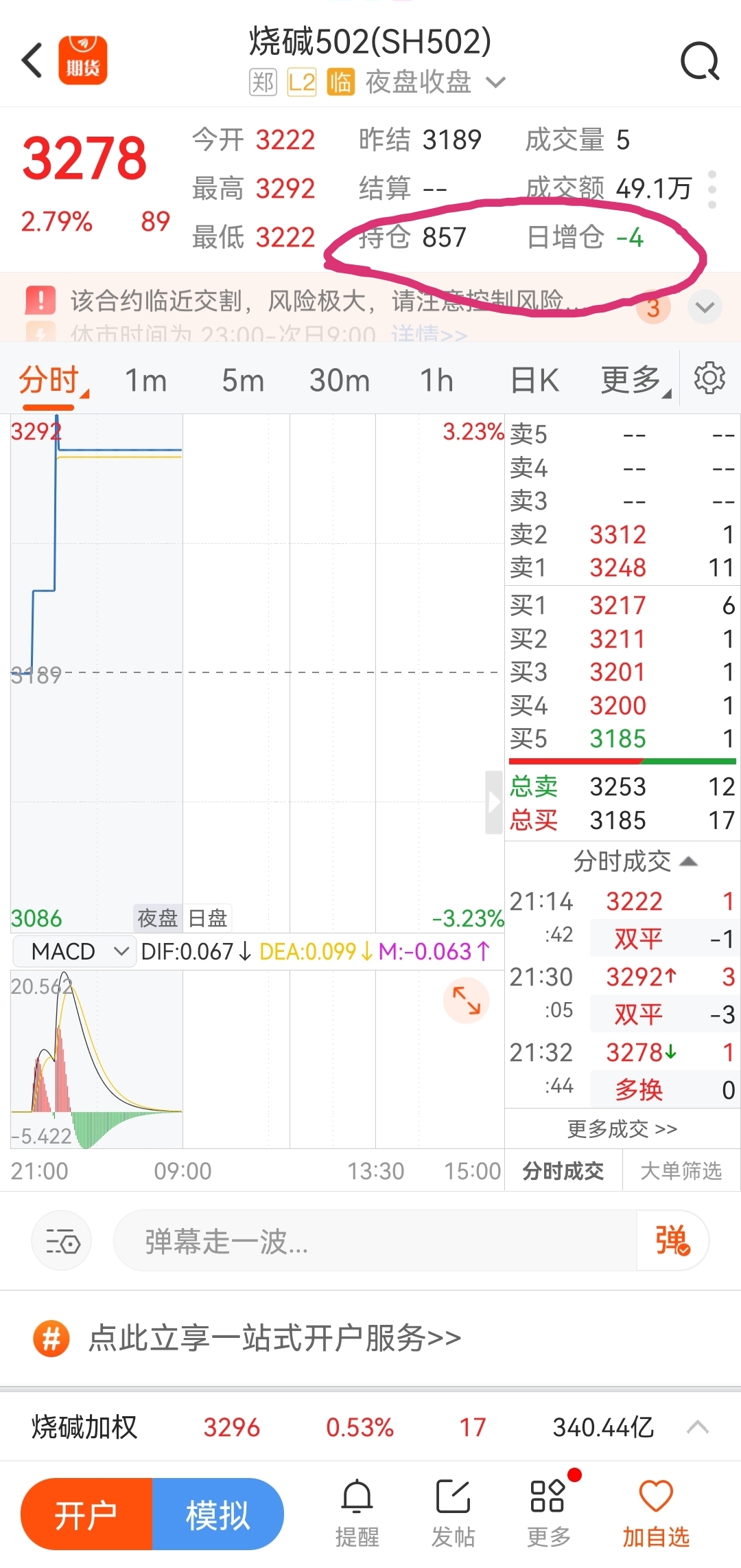 白天收盘持仓1111手,现在857手,为啥显示显示减仓4手,还有200手哪去了?