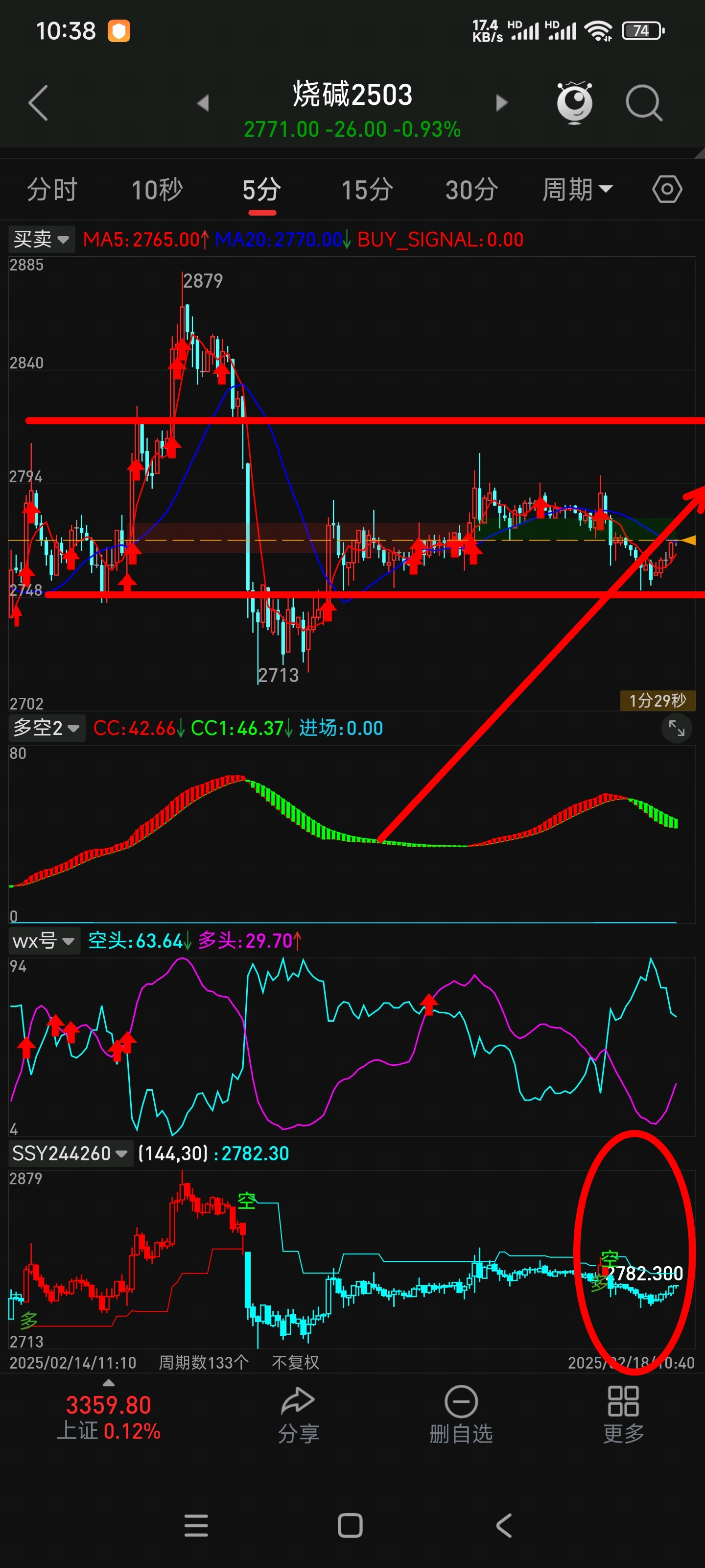 5分钟到位做多,同样继续观察突破2782做多