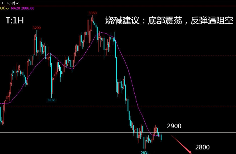 烧碱2505:烧碱延续底部弱势回撤的走势,整体的趋势形态偏空不变,短期看行情的回升测试力度,遇阻回落可择机空单布局。操作建议,烧碱回升测试2900一线遇阻不破可进场空单,目标看下方2800一线,损30个点。