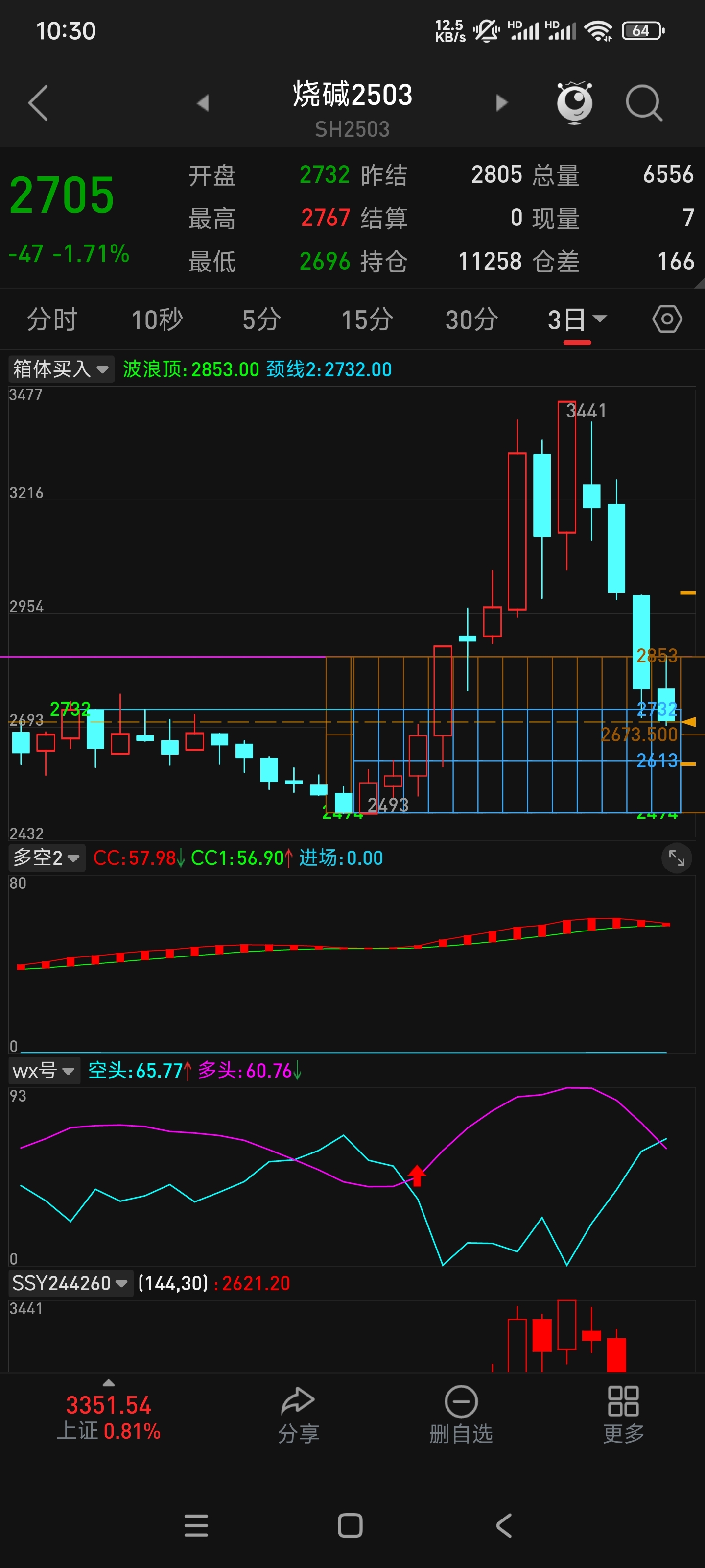 60以到平仓睡觉,3千块,03也破位2732进入下箱体,今天操作结束,