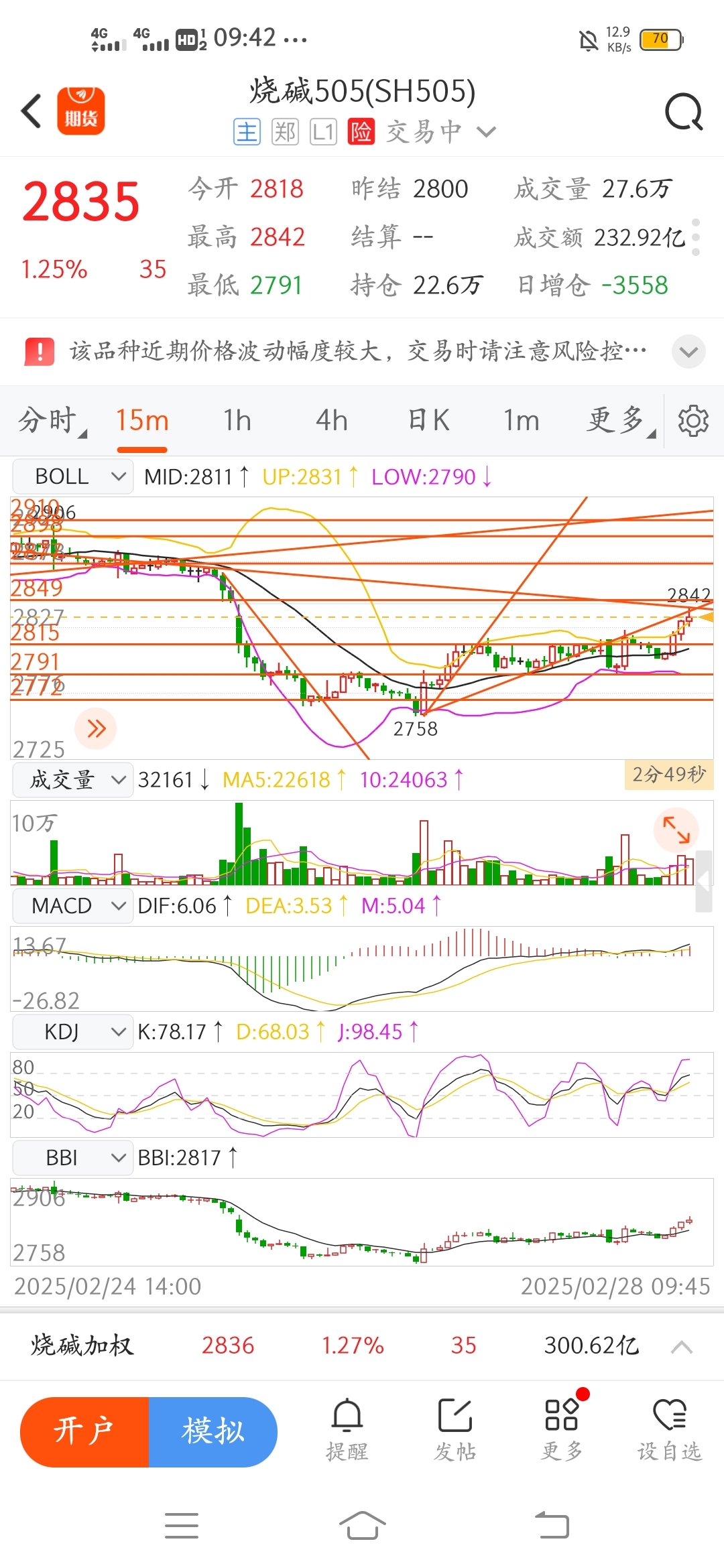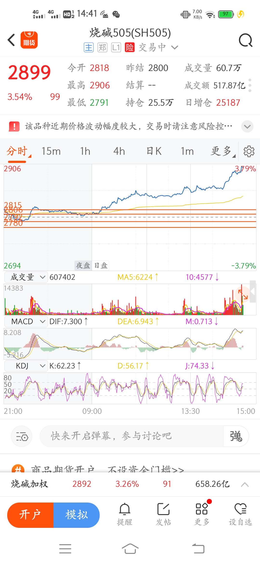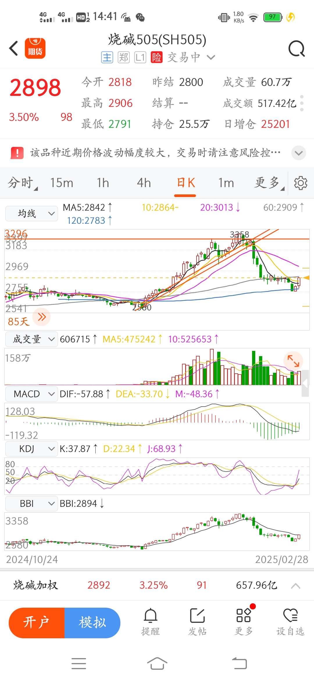 下班回来,看烧碱走的挺好,前两天说的日线低位金叉,恭喜跟上的友友们!