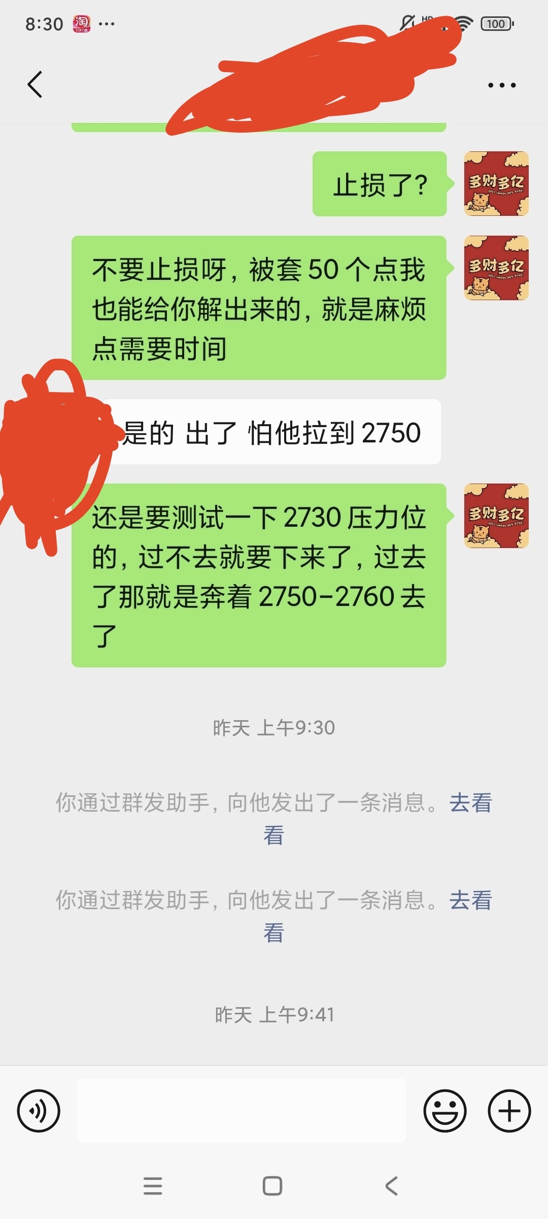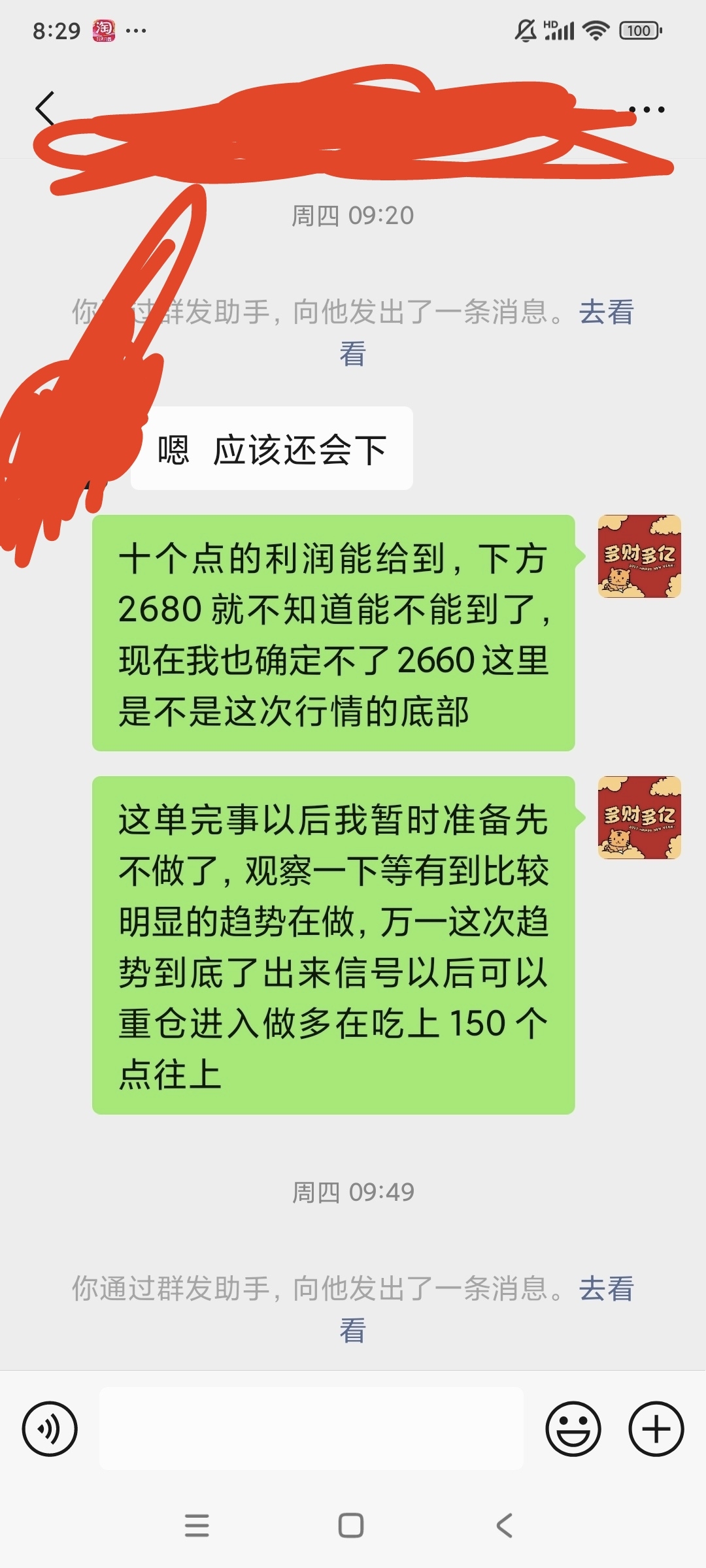 $烧碱505(CZCE|SH505)$ 很多人只看到我做单准确率高了,但是不知道你们听没听过这么一句话:想要人前显贵就要人后受罪,相信大部分人不管是赚是亏市场停市以后就去睡了,或者干别的去了,即使有亏钱的焦虑的睡不着但是也仅仅是焦虑一下罢了,我也发过一次帖子了,不过估计大部分人也就是看看罢了,我每次停市以后都要复盘的,当你们去打游戏或者睡觉刷剧的时候,我正在绞尽脑计的去思考,白天上午和下午收盘后的时间段还好些,夜盘收市后从2021年开始我没在凌晨一点之前睡过觉,正常都是熬到半夜两三点,早上七点半之前就醒过来了,都形成了固定的生物钟了,即使周六周日不开市我也是夜里一点之前睡不着,闭上眼躺了那里就是睡不着,早上到点就醒,虽然是困得睁不开眼但就是一点睡意都没有,我这刚三十岁出头的人硬是熬的头发都白了,出去人家一看到我都说我像四十多的,一脸憔悴的模样,说这些不是想跟谁诉苦,因为你们这些人自己不经历过是不可能跟我共情的,我发出这些来你们只会嘲讽笑话我,但是我不在乎,我只不过是想告诉你们想要在这个市场做到稳定盈利就要静下心来打磨技术,不要想着一口吃成个胖子,不用多了,能有一个人听劝我也算是做了一件善事,接下来说一说你们最关注的行情趋势,先说一下当时2900开空的那个单子,说实话没想到真有人跟了,根据开完单以后的上帝视角来说当时的开单点位很差,但是当时是准备做个十个点的短线盈利就走的并且个人判断的是80%的几率能到,后续大家也都知道了止盈点位没给到不说,拉升到了2930去,后来我为什么在2922补仓,但是发的帖子确是等拉到了到2930点位的时候才让大家补仓呢,问题的关键来了,“风险控制”因为我不知道大家的资金量和仓位多少,我不知道你们抵抗风险的能力大小,愿意承担多大的风险,我只能在风险最低的点位让你们加仓,你们看图片就可以看到我让这位大哥补仓时的点位是跟我一样在2722,为什么不我不让这大哥等2730再补仓呢?因为这位大哥资金量比我还大,承受风险能力比我还强,当时就是拉到2800也不会有爆仓的风险,并且还有好几位跟着一起做的我为什么连2730都没让他们加仓呢?因为资金量太少了,一旦2730加仓完毕以后,行情拉到2760上方去,那么他们只能被迫止损没有第二个选择,现在再说一下个人对后续的行情走势判断,周一还是要看一下2660到底能不能破,破了那么2630基本必到,那么又如何看这波到底是不是双针探底呢?拉到2730并且有效站稳这个点位基本就可以确定这波要开始一波拉升到2900附近的行情了,最后补充一下,因为截图的突然想起来了,我这个人但凡是给你们建议你们还跟了,不管是免费的还是收费的,我一律负责到底,不说一定让你盈利出来,但是绝对让你保本出来,但是如果你自己没听我的自己操作了那我也没有什么办法了,还有人会说跟你的单子被套住了,那时间成本怎么算呀,那我只能说还是你自己做吧,你自己能做到100%盈利每次都不被套不亏损,还跟别人做什么那不是没病找罪受吗?到目前为止本人所有的策略都是免费分享的,没有收取任何人一分钱的费用