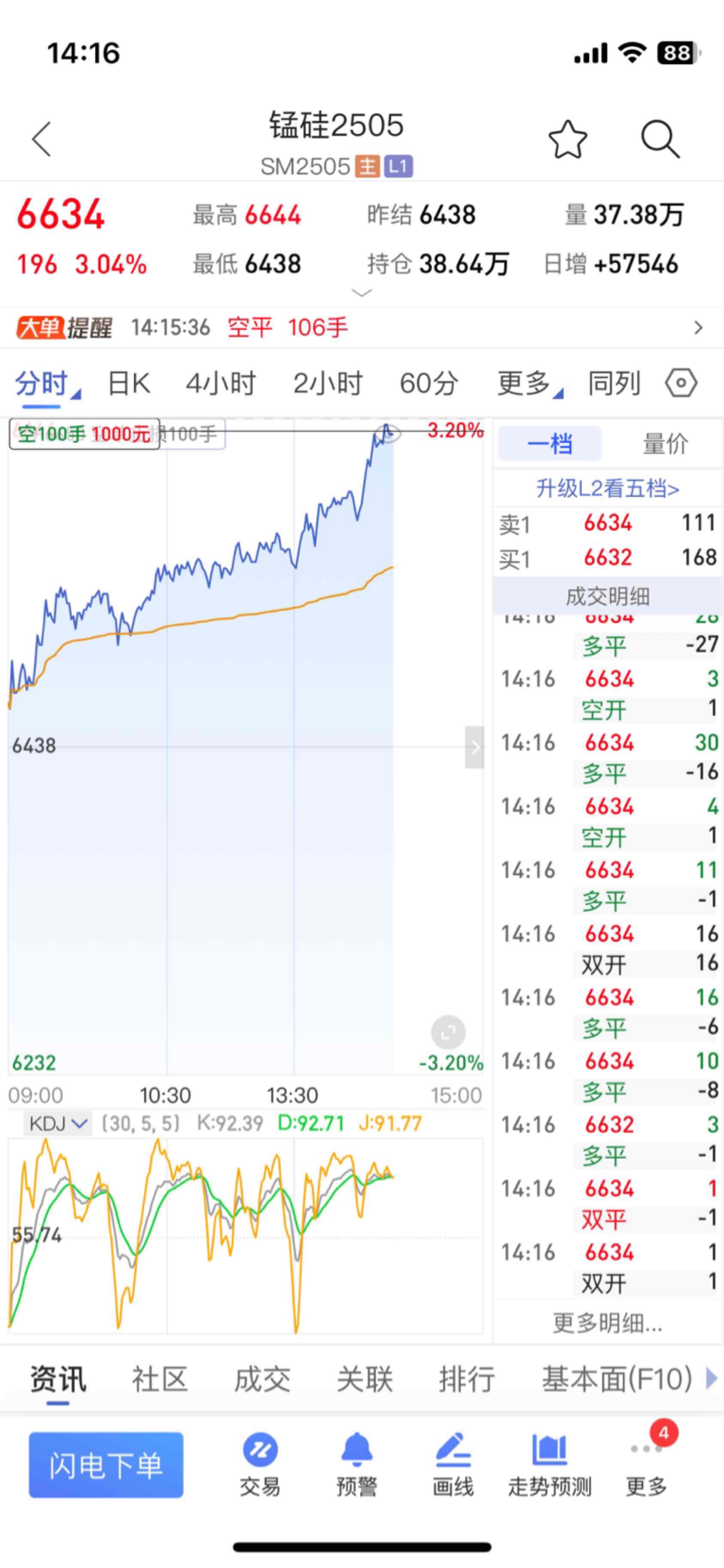 日内短线开一下空,200手。吃口肉就跑!