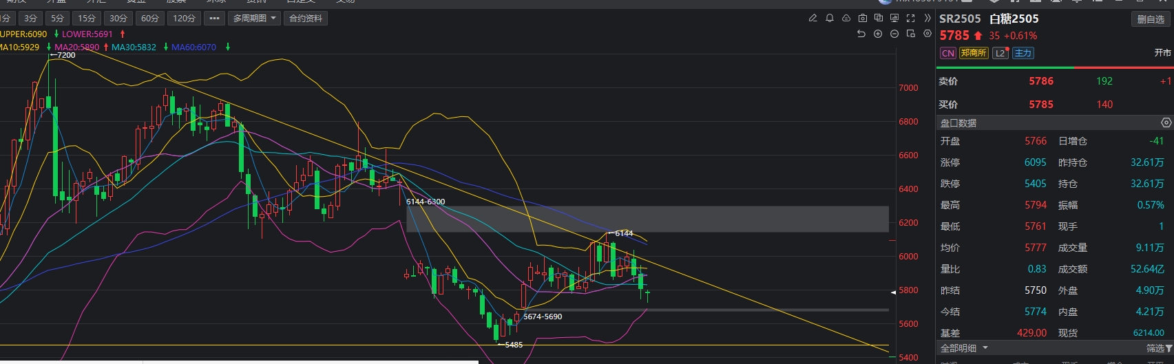 $白糖505(CZCE|SR505)$ 白糖周K线下降通道,大家看下图