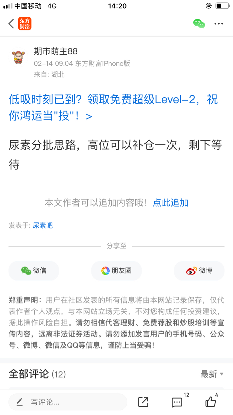 温馨提示: 1.根据《证券法》规定,禁止编造、传播虚假信息或者误导性信息,扰乱证券市场;2.用户在本社区发表的所有资料、言论等仅代表个人观点,与本网站立场无关,不对您构成任何投资建议。用户应基于自己的独立判断,自行决定证券投资并承担相应风险。《东方财富社区管理规定》