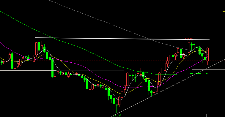 目前日线图上,可以看第5浪,如果上方平台突破了,就是头肩突破了,行情预期很大