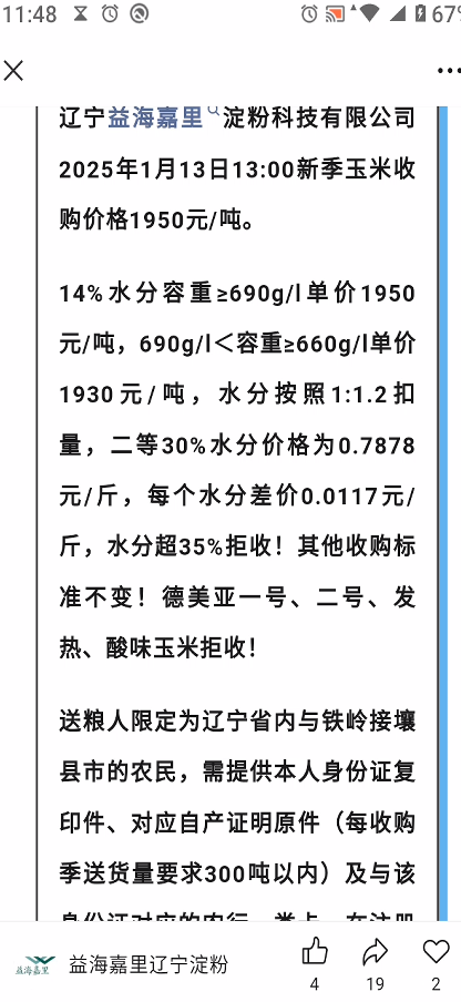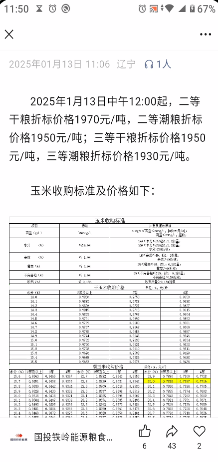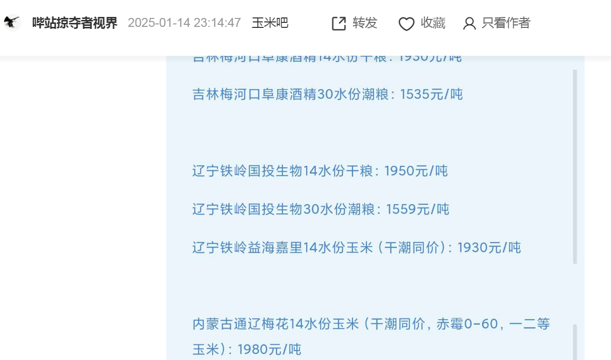 这才是真实的最新玉米现货价格。请看,来自官网的最新玉米报价截图。先知每天的工作就