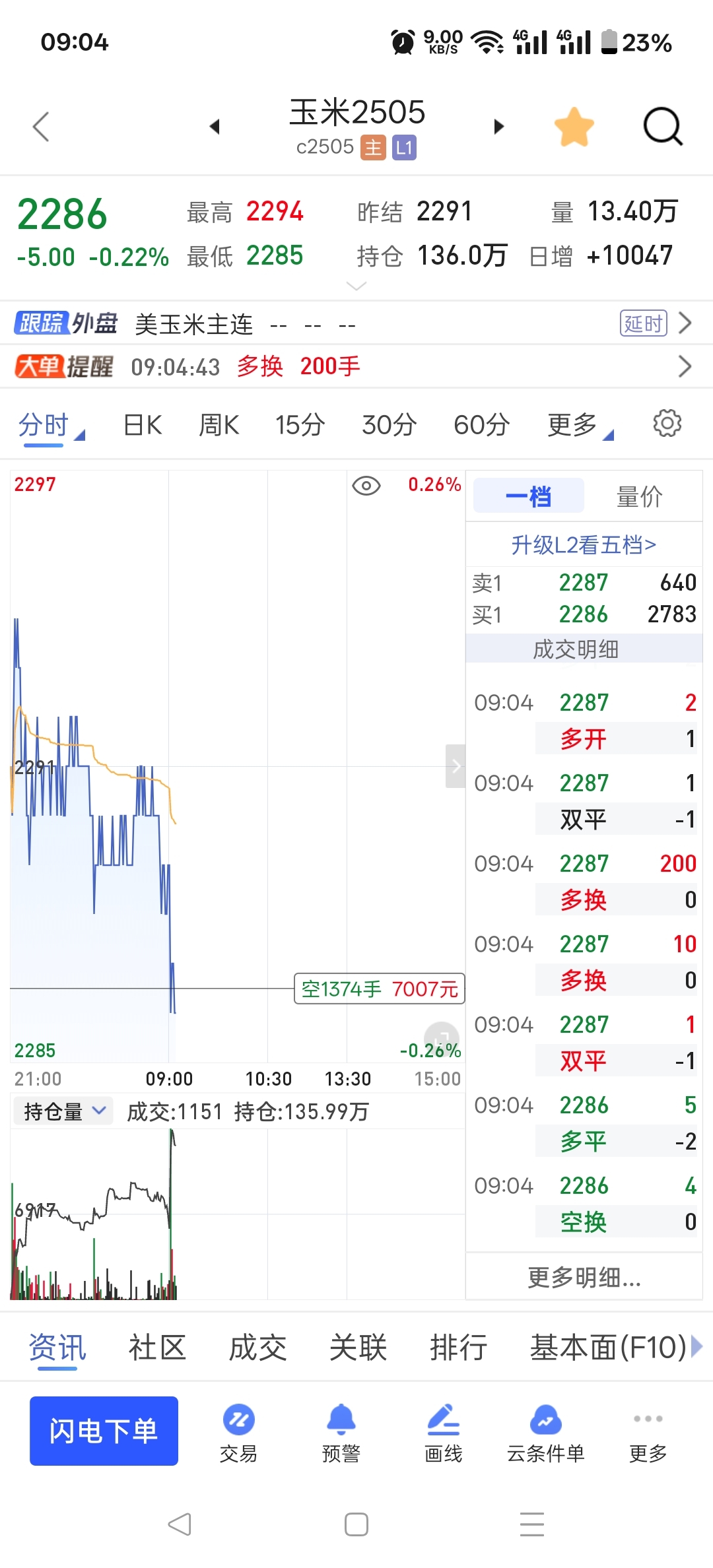 $玉米2505(DCE|c2505)$ 直接空,不用说