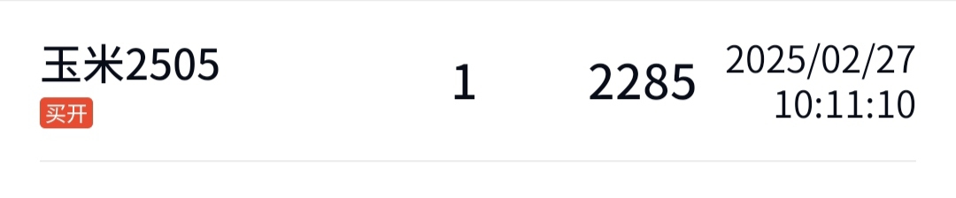 我不是多头,也不是空头 //@我不是多头 :$玉米2505(DCE|c2505)$2285,一秒3单,果断坚决