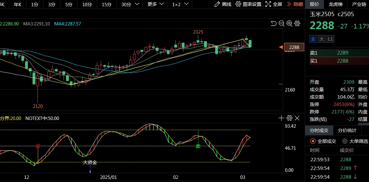 $玉米2505(DCE|c2505)$ 看日线图周线图还得空呀