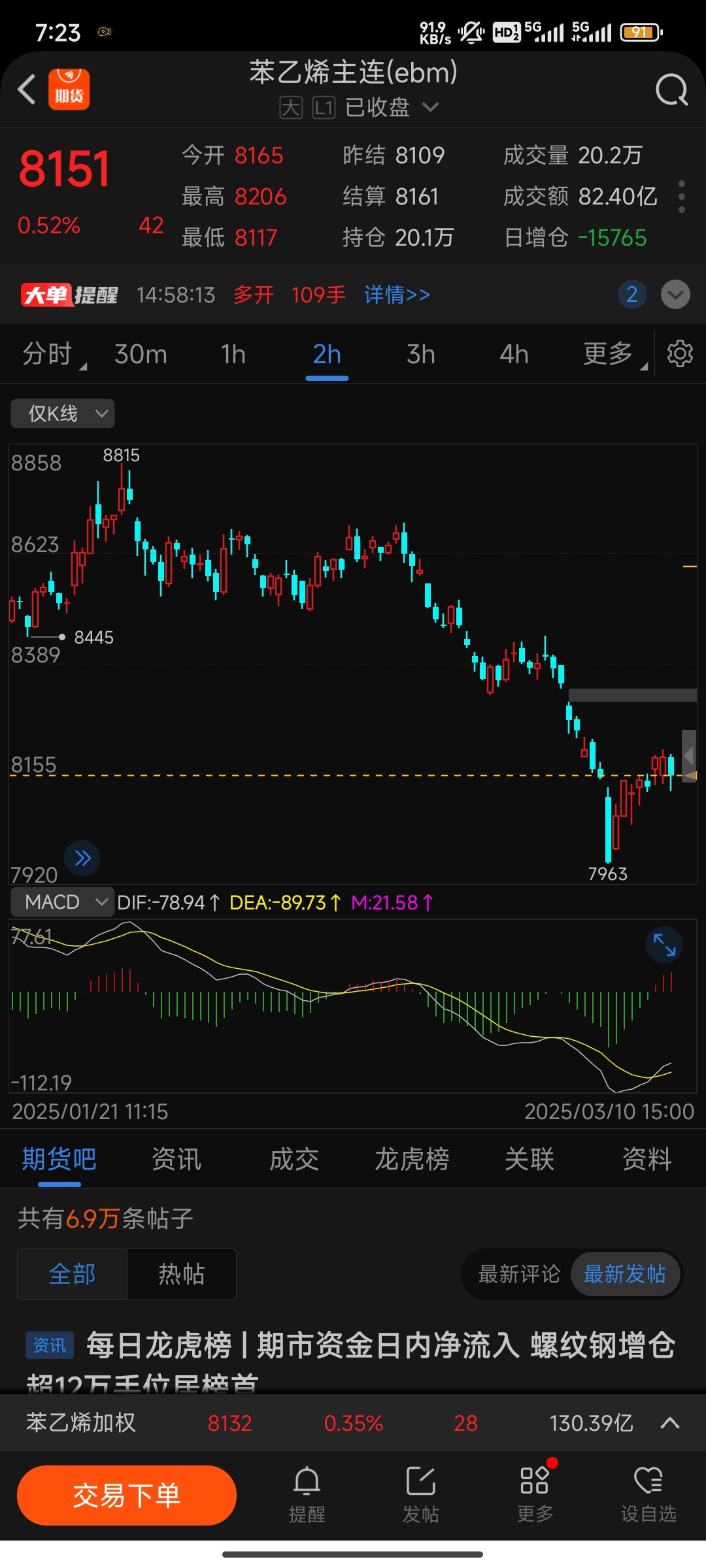 $苯乙烯主连(DCE|ebm)$ 8200附近空