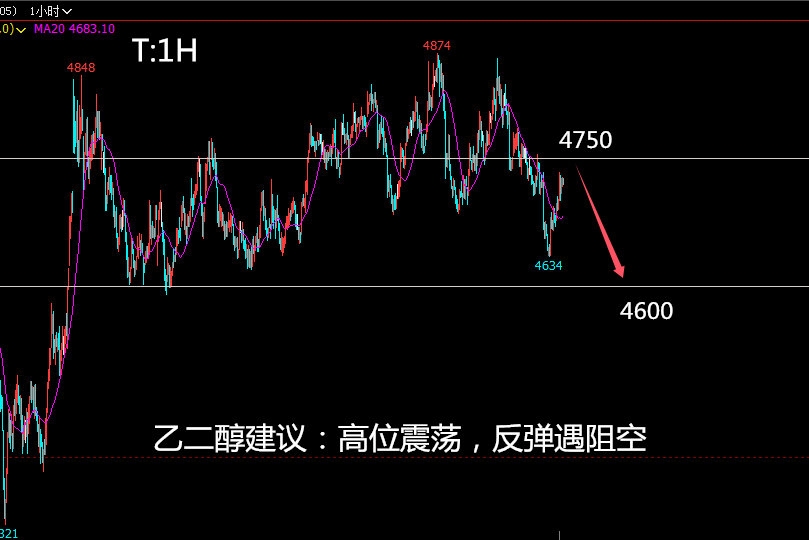 乙二醇2505:乙二醇自高位震荡回撤,短期看行情的回升测试力度,上方遇阻回落可择机空单布局。操作建议,乙二醇回升测试4750一线遇阻不破可进场空单,目标看下方4600一线,损40个点。