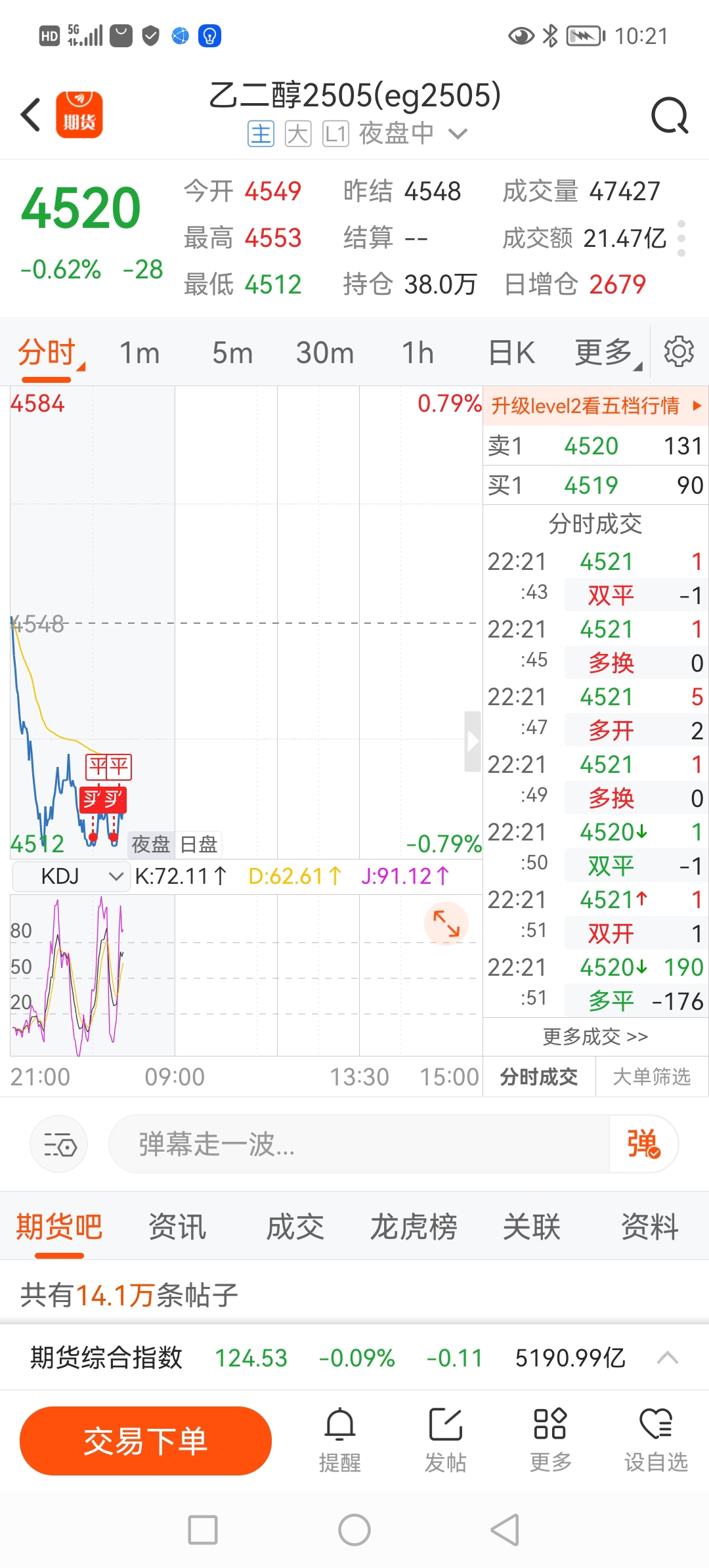 $乙二醇2505(DCE|eg2505)$ 赚500平仓睡了