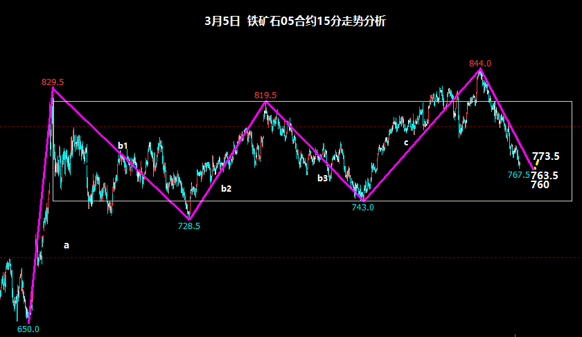 铁矿从844以来走的笔直,丝毫没照顾我844后还有对新高的念想,笔直走到767.5,这刚好也是3月3日预判的这个结果。