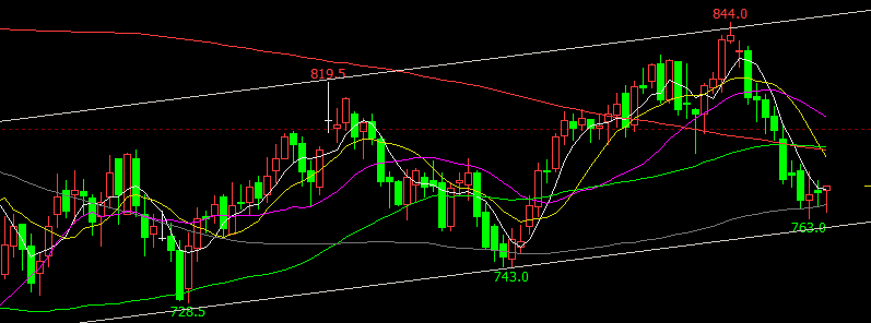 操作上的话,结合小时图的位置,774一带可以看个反弹,上方阻力位是年线的790一带,先看小空间,如果运行到790这里增仓攻,那就准备留仓拿大空间往845预期