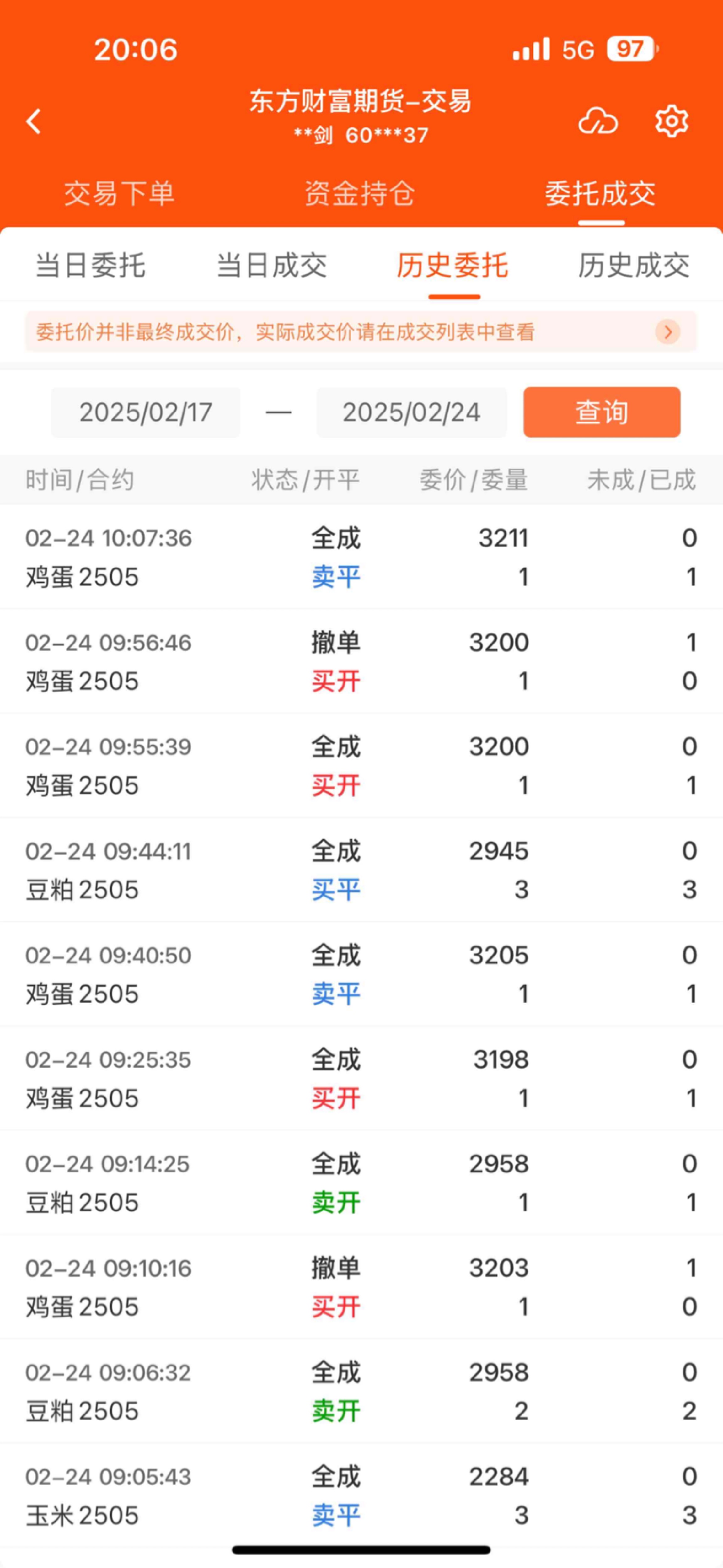 $鸡蛋2505(DCE|jd2505)$ 今天所有的平仓都平早了