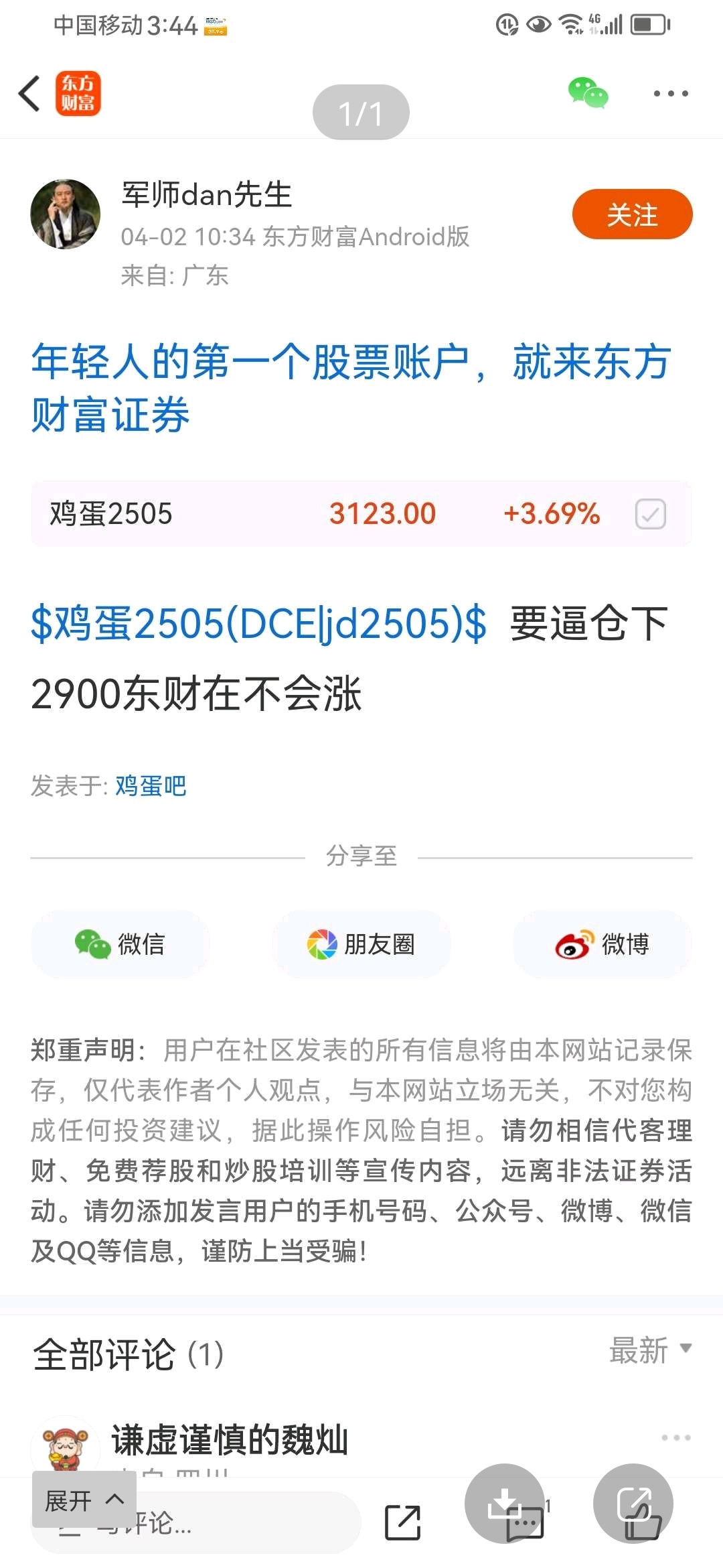 $鸡蛋2505(DCE|jd2505)$ 爆仓军师邳脸比城墙还厚,又删帖了