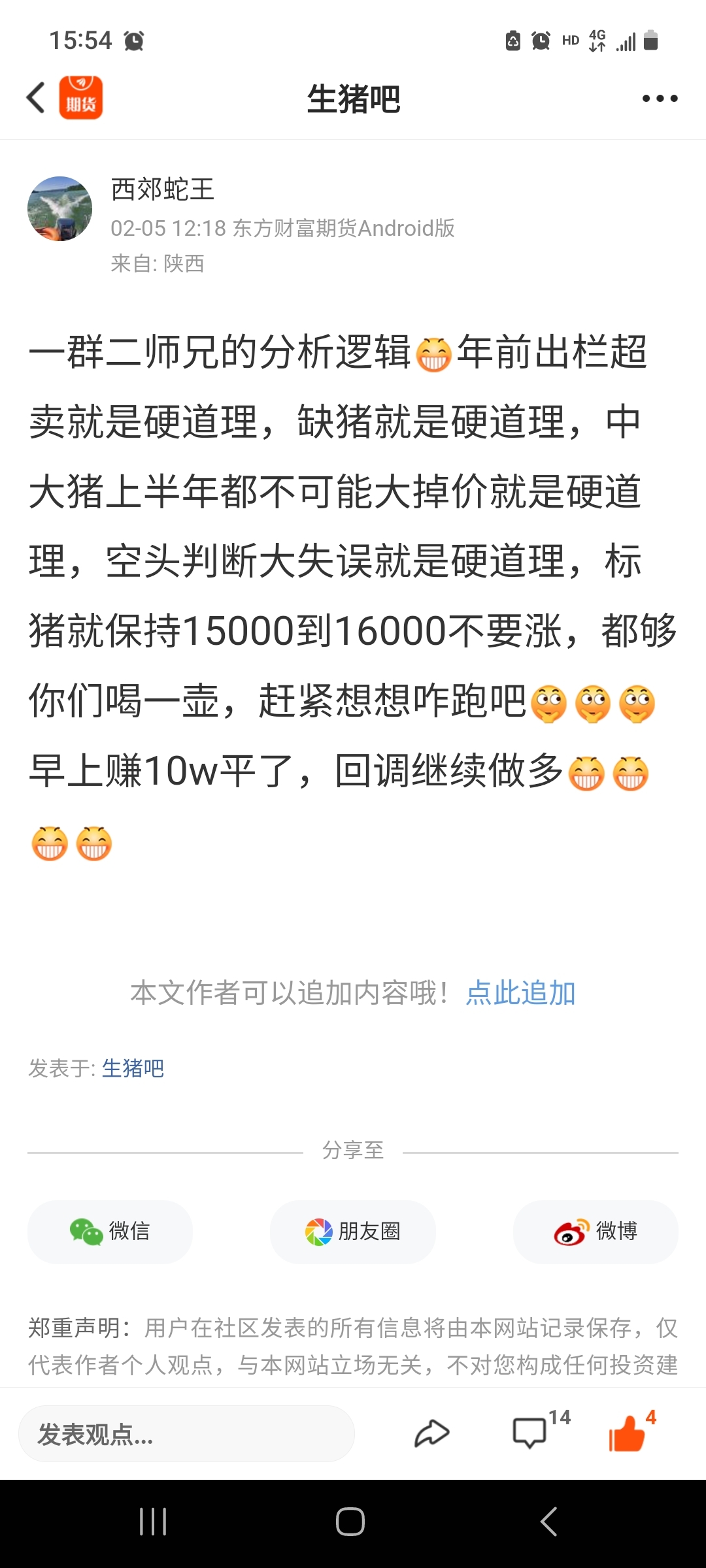 ,蛇哥开年第一天赚10W就平了,回调才准备往回接,下周一哥会把多单逐步接回来,还是那句话,标猪今年见十元,这几天现货价跌只是为03合约里的多散量身定制而已,第二就是想到时间低价收储,不用怕,现货三月份开始还会飙涨,上半年会有一段时间严重缺猪,13000下面逢低布局中长线多单,向蛇哥好好学习,下周一等哥进来之后,再给你们剧透现货情况