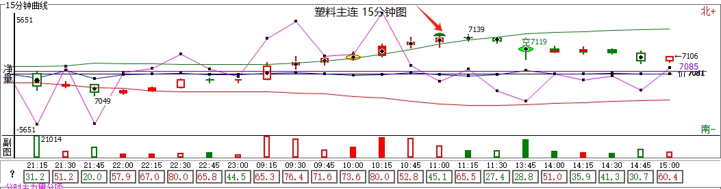 塑料今日空点出现在11:00,收到原油影响拉升一波,下午放量做空