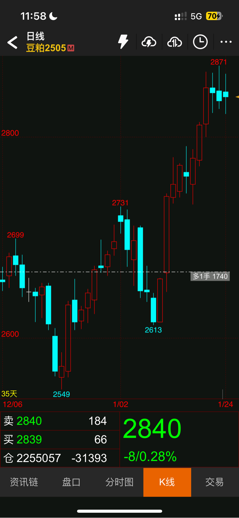 $豆粕2505(DCE|m2505)$ 今天收不了阳线就该考虑收网了