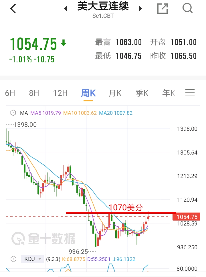 本周美豆在周三上冲1070上方失败后震荡回落,两粕也跟随回落。目前空2505合约