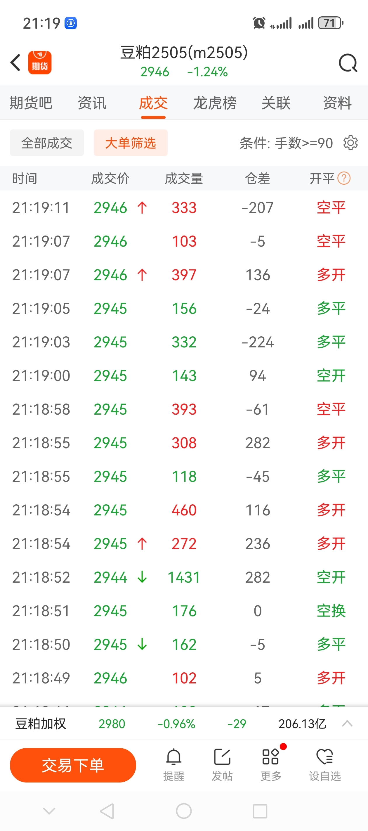 $豆粕2505(DCE|m2505)$ 都是大户,一千多手的空。。