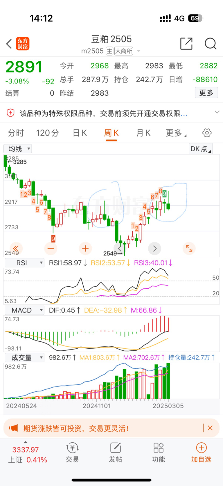 $豆粕2505(DCE|m2505)$ 刻舟求剑,轻空一手。
