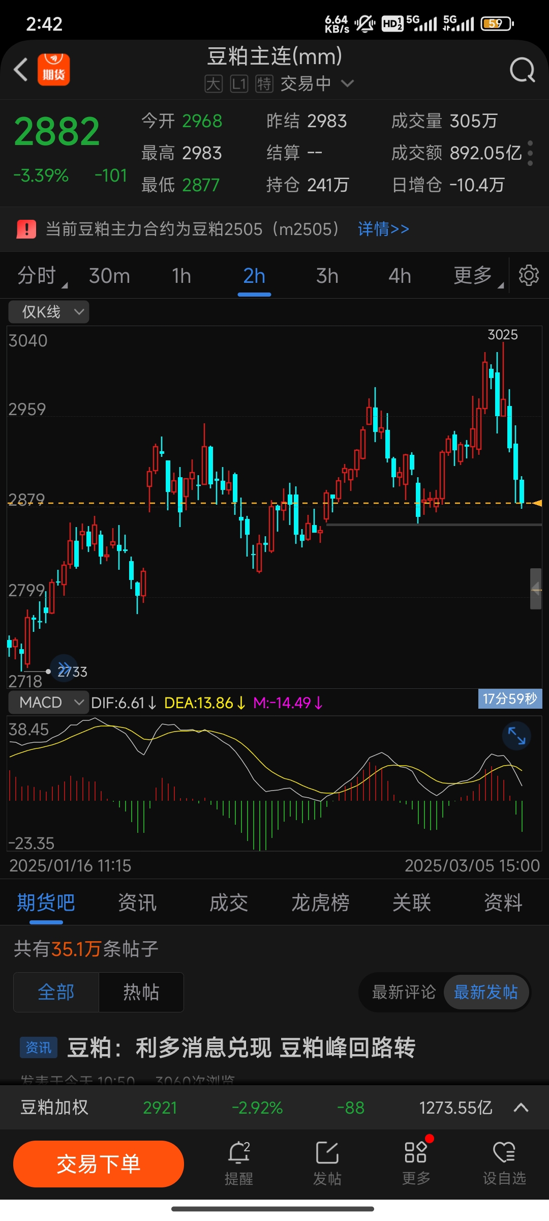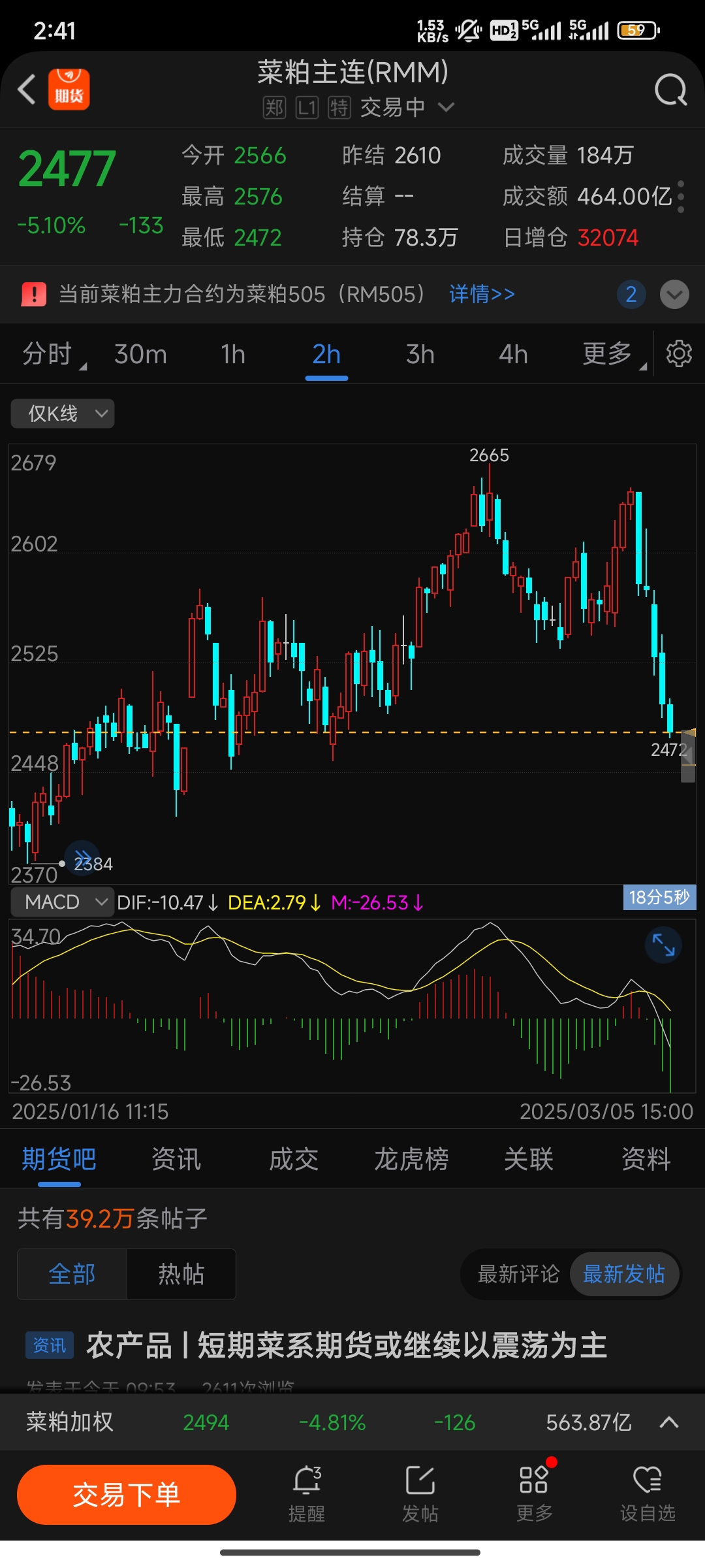 这个不就跌下来了嘛菜粕都大跌5%呢