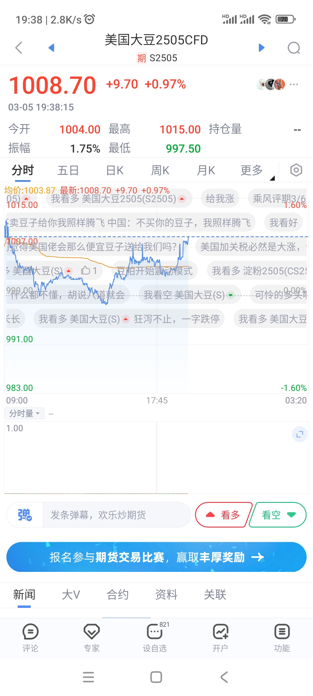 $豆粕2505(DCE|m2505)$ 外盘猛拉, 要拉爆,飞出屏幕。