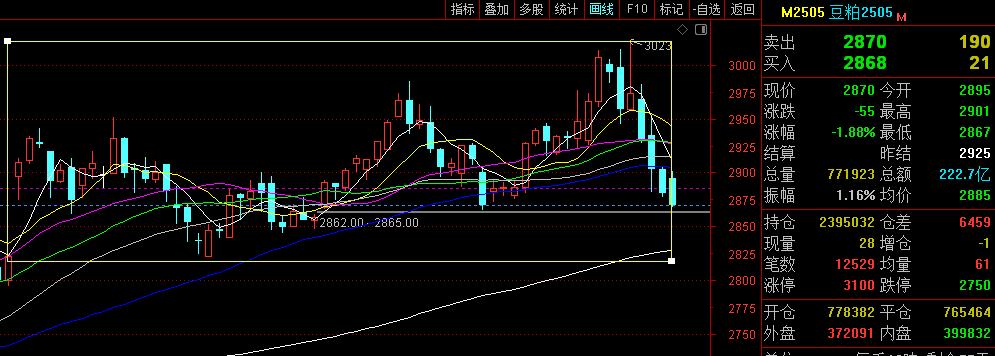 豆粕要回到下方的箱体底部2820附近,期间不要抄底,反弹就是空