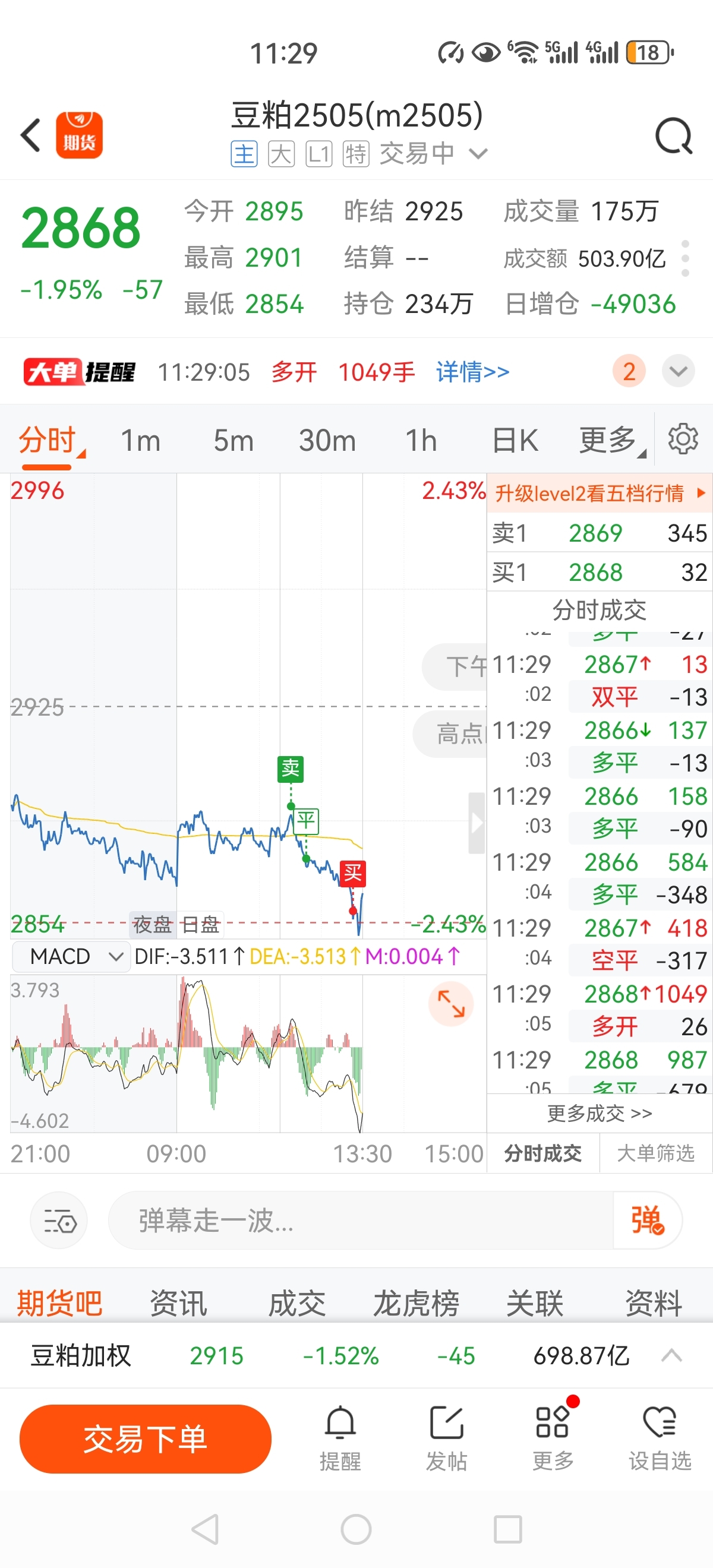 $豆粕2505(DCE|m2505)$ 天天让我赚,跟捡钱一样