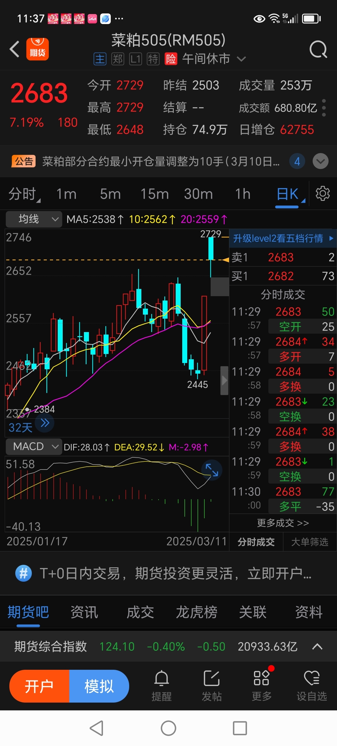 豆粕的现货价比菜粕高了近900,而即将二月就要到期的豆粕期价仅比菜粕高200左右,就算巴西大豆丰产但要赶到5月出油粕也需要一定的时间。只有远月可能受到巴西大豆的影响。总之目前2850附近散户切忌大量开空单。设想一下如下月期价仍然在2850左右,我敢保证大型畜牧企业,哪怕是贷款都敢大量吃进低价即将到期的05豆粕期货。
